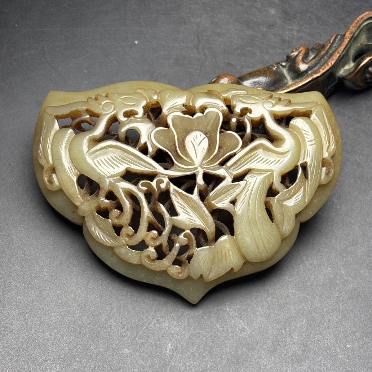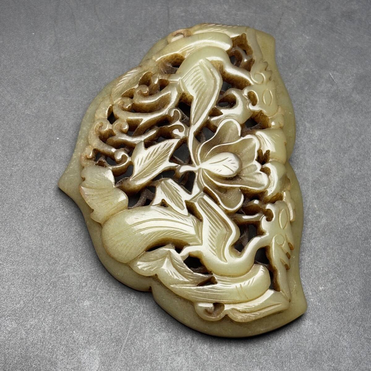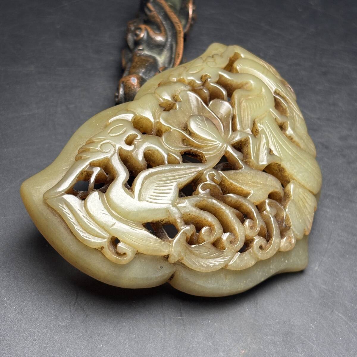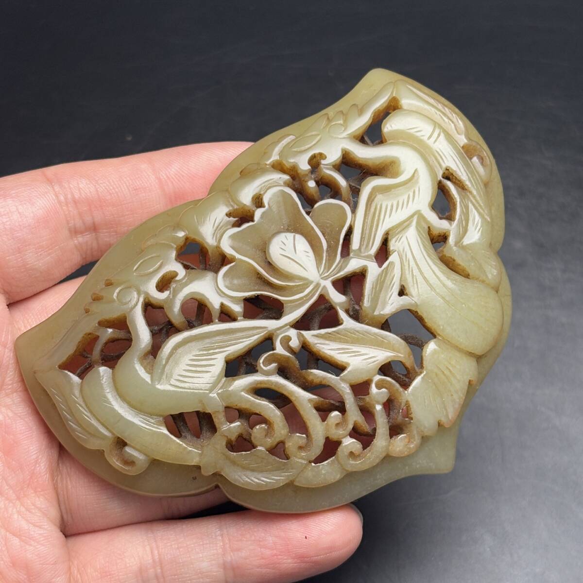 *珍品旧蔵* 清 和田老玉 和田玉鳳凰圖騰嵌件 花王 鳥王 唐物 古美術品 玉彫 古玉彫 古賞物 手彫り 古美味 中国古玩 ZK0305
