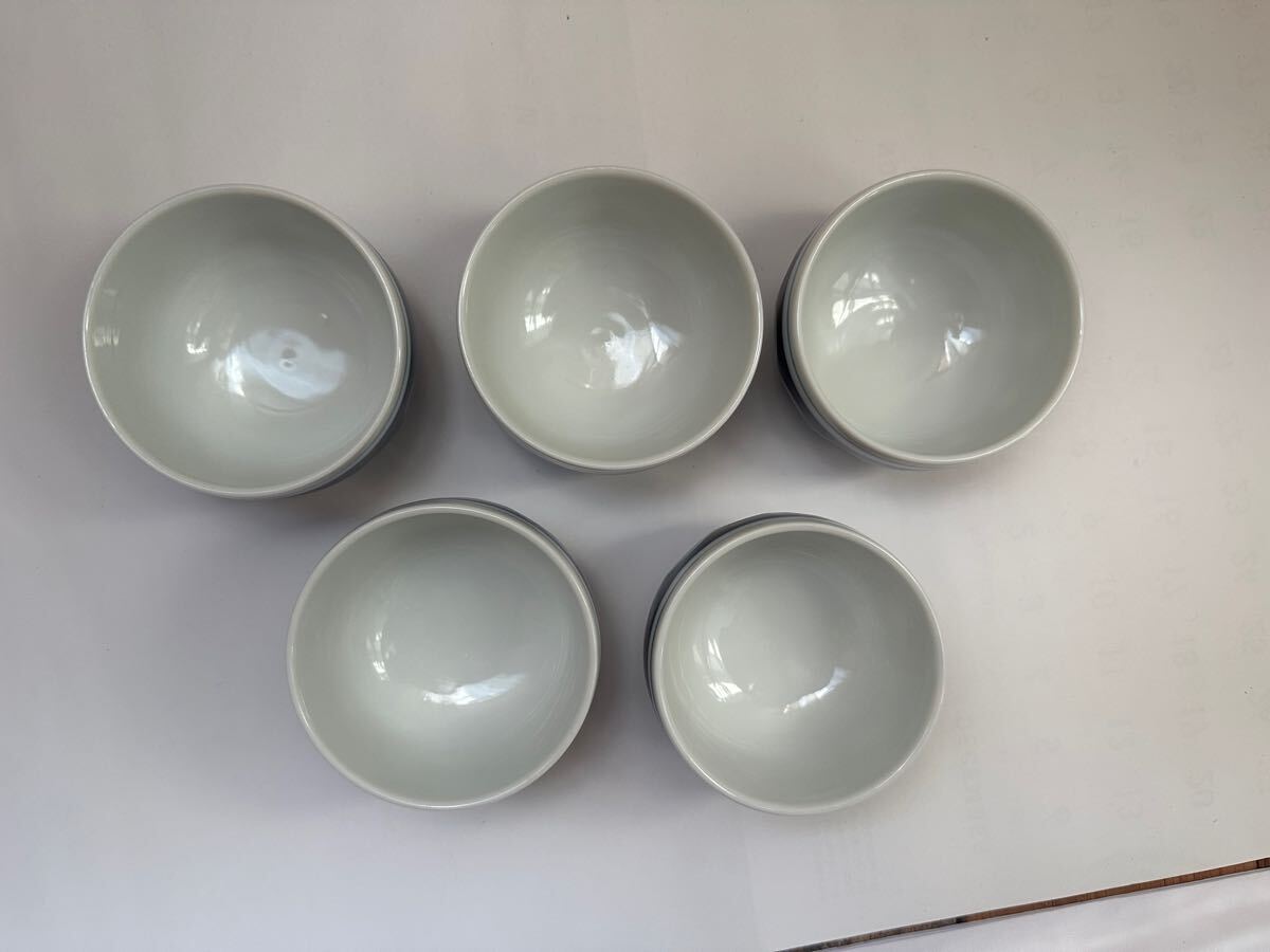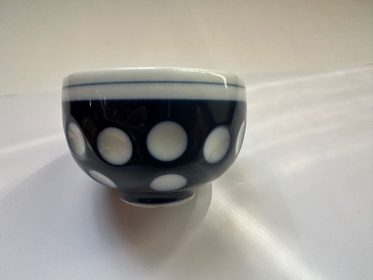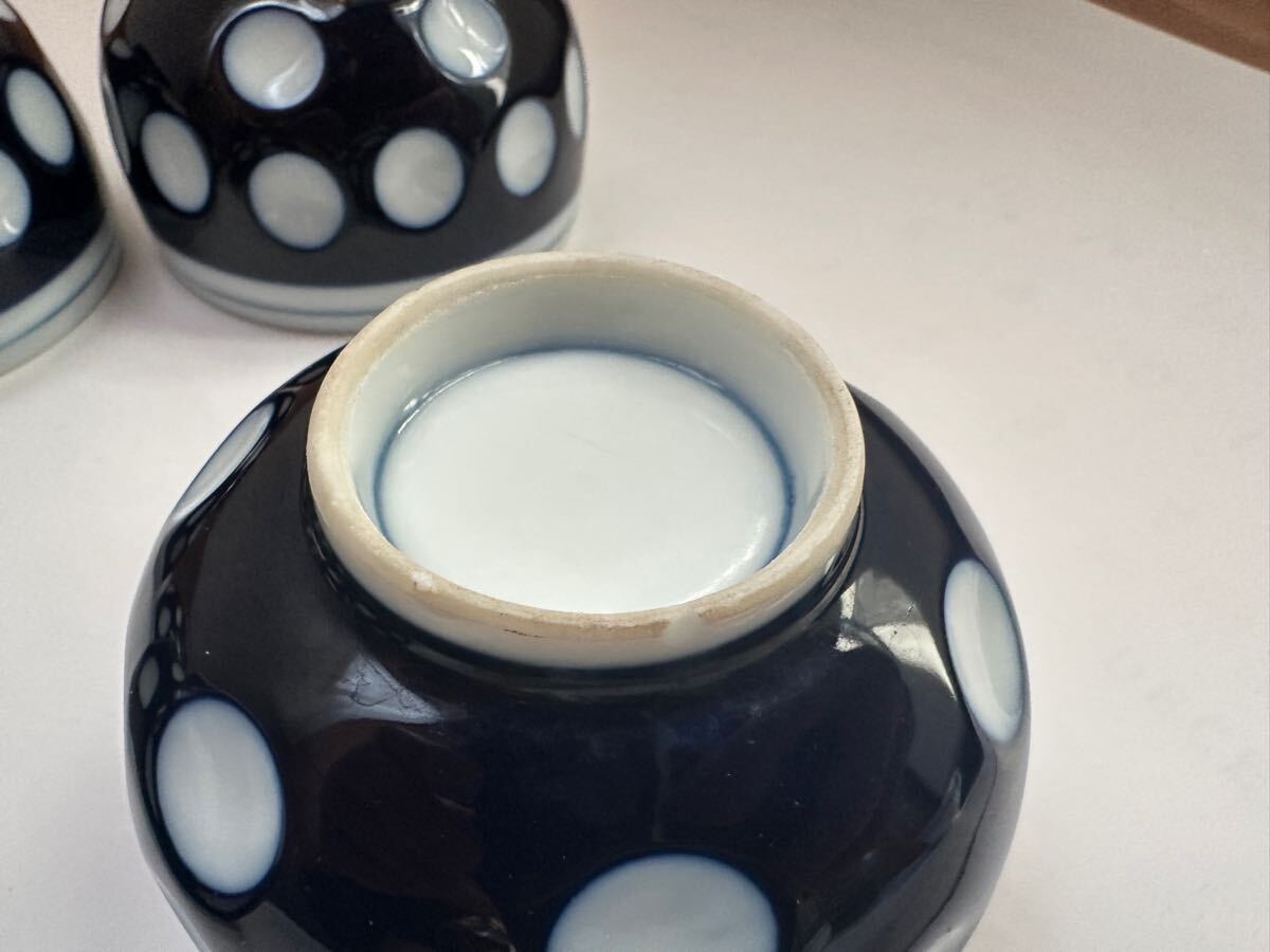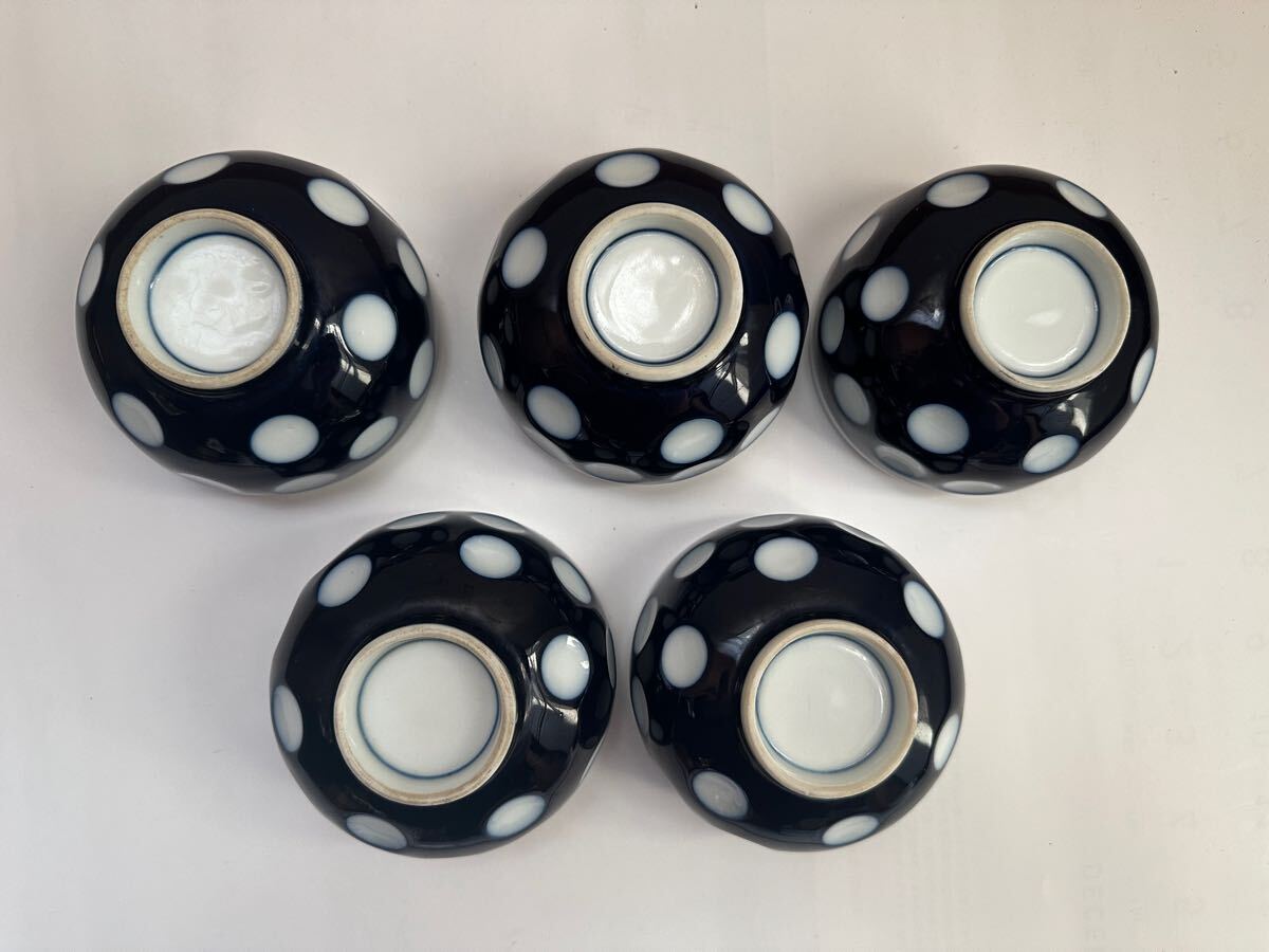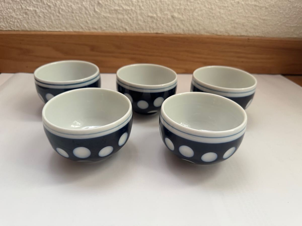 送料込み 古い 中古品 銘なし 湯飲み 水玉 5客セット 、 模様 ドット お茶 湯呑み 湯のみ レトロ 昭和 ポップ ヴィンテージ アンティーク