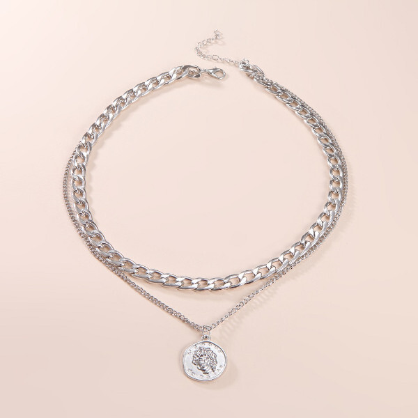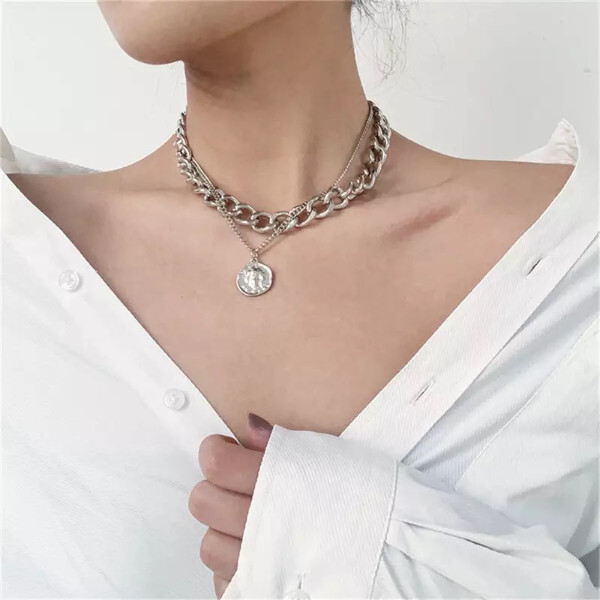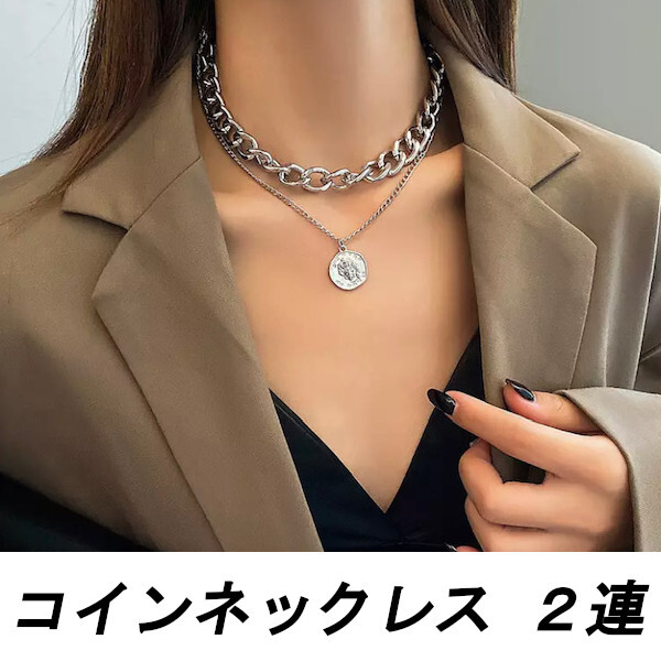 コインネックレス 2連 ダブルチェーン ネックレス レディース シルバー
