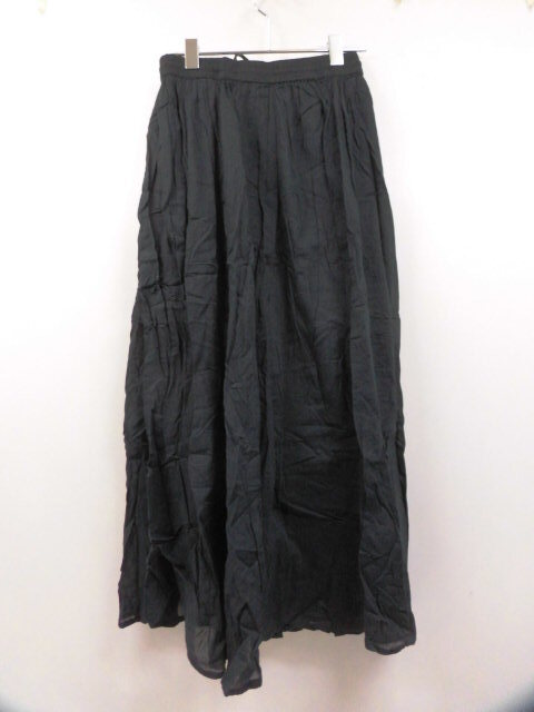 RODEO CROWNS ロデオクラウンズ ロングギャザースカート フレアスカート ウエストゴム サイズ調節紐付き ボトムス ブラック 黒 FREE