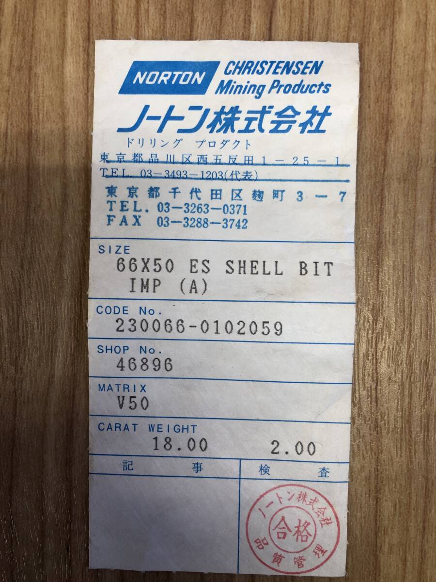 ◆◆ ☆未使用☆ ダイヤモンドビット ノートン 1個 ◆◆ 66×50 46896 V50 / NORTON / ボーリング 地質調査【札幌近郊発】(00142)