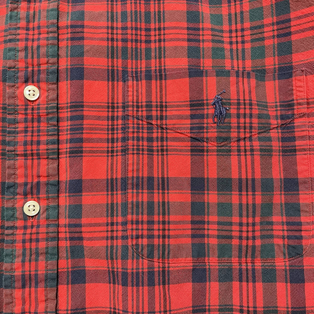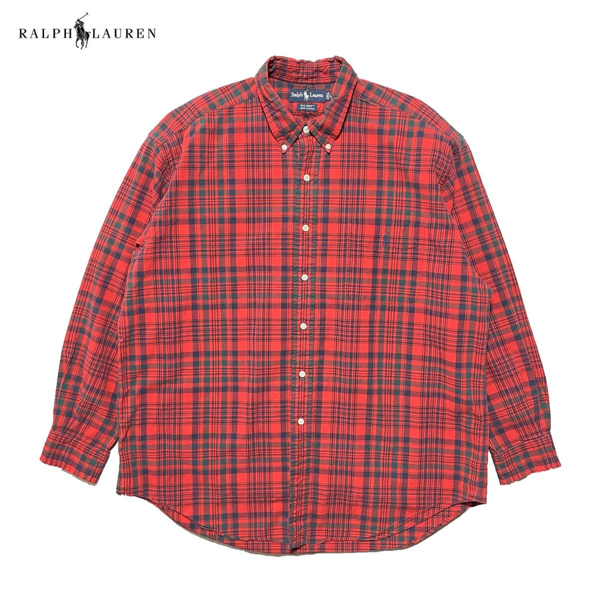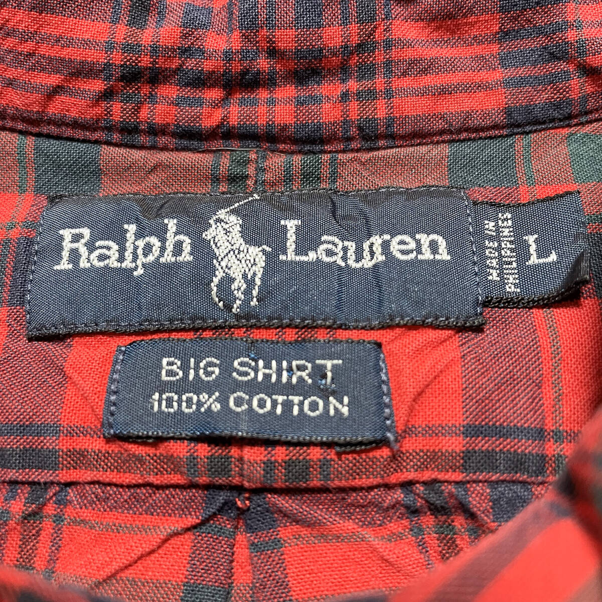 Ralph Lauren BIG SHIRT ラルフローレン ビッグシャツ コットン 長袖シャツ BDシャツ レッド チェック柄 メンズL BG0865