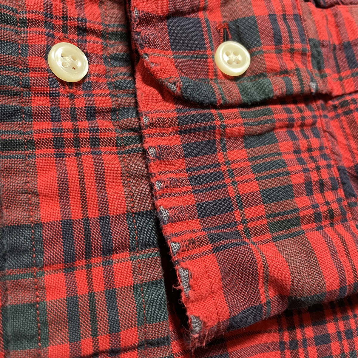 USA 古着 Ralph Lauren BIG SHIRT ラルフローレン ビッグシャツ コットン 長袖シャツ BDシャツ レッド チェック柄 メンズL BG0865