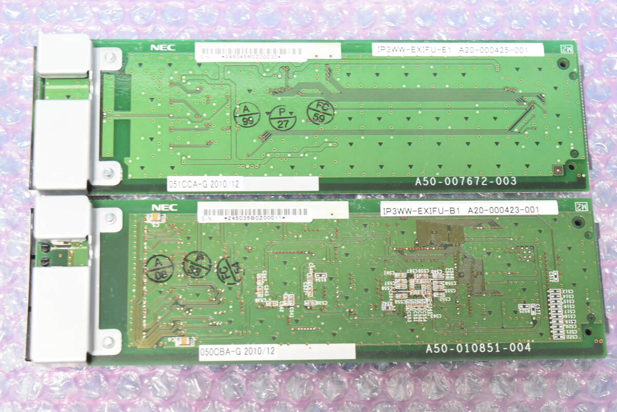 ■メーカー : NEC/日本電気 ■商品名 : Aspire X 通信ユニットセット ■型番 ・通信ユニット(基本架用)【IP3WW-EXIFU-B1】 ・通信ユニット(増設架用)【IP3WW-EXIFU-E1】 ■付属品 ・通信ユニット設置用カバー 2個 ・ネジ 2個 ※写真に写っている物で全てです。 ■対応主装置 ●Aspire X IP3D-3KSU-B1 IP3D-6KSU-A1 ※その他、OEM版など、他の主装置でも対応可能な物がある可能性がございます。 詳しくは直接メーカーなどにお問い合わせください。 ■主な特徴/仕様 【IP3WW-EXIFU-B1】 ◎増設架を利用する場合に基本架の基本モジュールに実装するユニット ◎メーカー希望小売価格 15,000円(税別) ○増設架を利用する場合、基本架の基本モジュールに実装 増設架の基本モジュールに実装したIP3WW-EXIFU-E1とIP3WW-EXIFU-E1にケーブルで接続 ○システムで最大1枚 【IP3WW-EXIFU-E1】 ◎増設架を利用する場合に増設架の基本モジュールに実装するユニット ◎メーカー希望小売価格 15,000円(税別) ○増設架を利用する場合、増設架の基本モジュールに実装 基本架の基本モジュールに実装したIP3WW-EXIFU-B1とケーブルで接続。 ○増設架の基本モジュール数分必要 ■商品状態・動作確認事項 ●簡単な動作確認 ⇒ OK。(下記参照) ・通信ユニット確認OK。 ※自動認識にて2架構成で表示されるのを確認しました。 ・ポート確認OK。 ※すべてのポートで認識されるのを確認しました。 ※専門知識・動作環境が無い為、簡単な動作確認のみとなります。 上記以外の動作確認はしておりませんので、消耗品や不備がある部分、動作確認を行っていない部分につきましてはノークレームにてお願い致します。 ■管理番号: M- ※当方の管理番号となります。 商品内容とは関連はございません。 |
