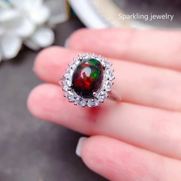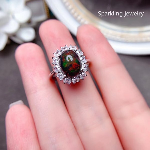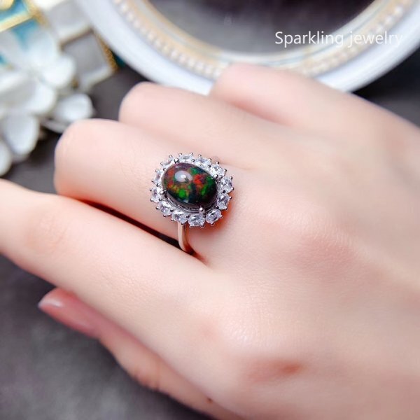 天然ブラックオパールリング,8×10mm,925シルバー,色あせない,18K金メッキ