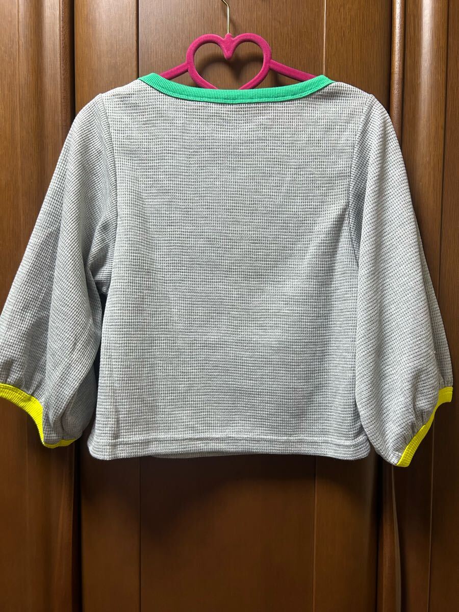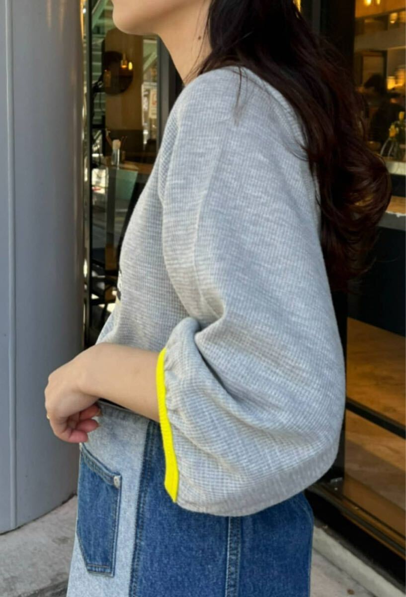 袖口と襟元で、違った配色デザインなのがアクセントに!ぽわんとボリュームがある神は、女性らしさをプラスしてくれます。