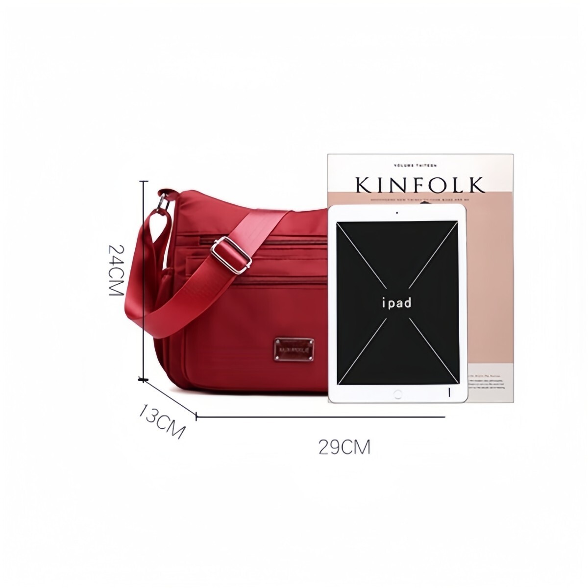 スマホ、長財布、キー、IPADも折り畳み傘も入るのに、コンパクトでちょうどいいサイズ