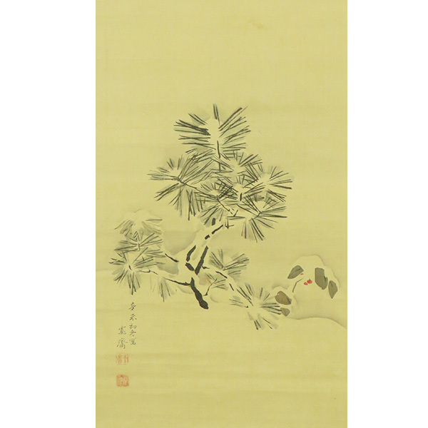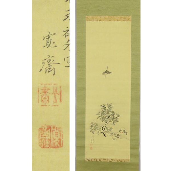 B-5158【真作】森寛斎 肉筆紙本淡彩 雪中花鳥図 掛軸/日本画家 長州藩 師・森徹山 の養子 円山派 帝室技芸員 書画