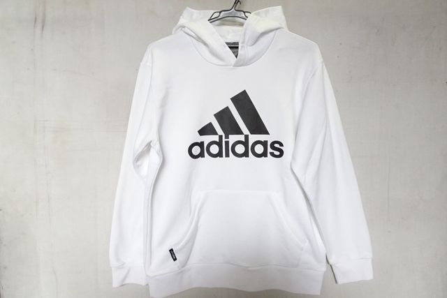 adidas/アディダス/長袖パーカ/フーディー/薄手スウェット素材/フロントロゴプリント/スポーツ/カジュアル/白/ホワイト/Oサイズ(3/3R7)