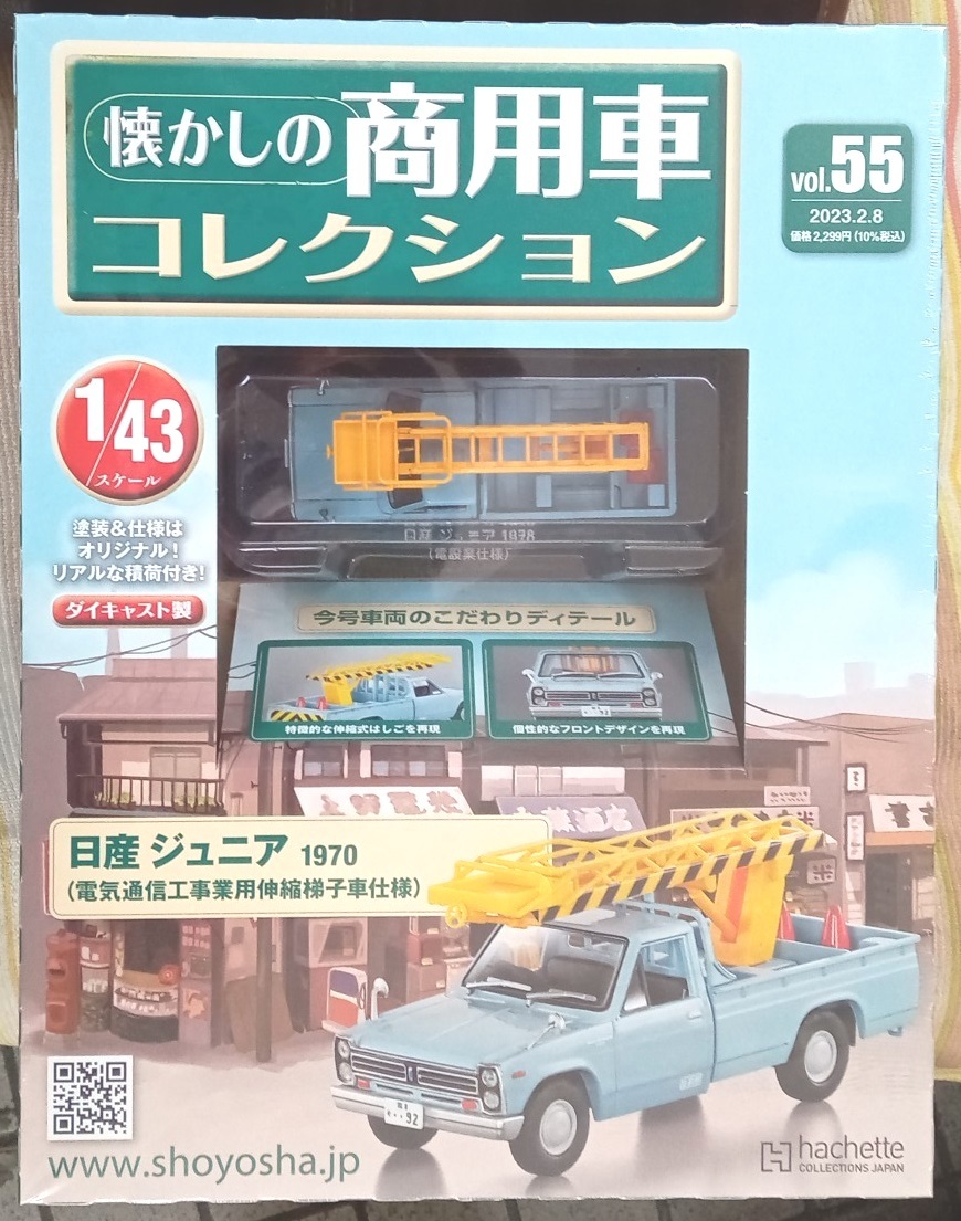 ☆1/43 懐かしの商用車 Vol.55 日産ジュニア(1970)電気通信工事業用伸縮梯子車仕様 Hachette☆新品未開封 在庫2個!