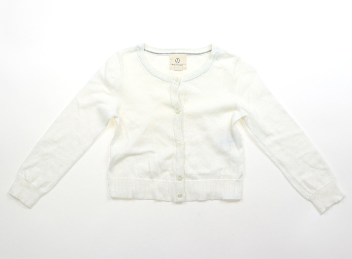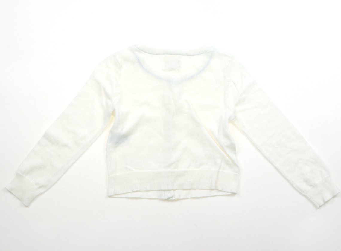 実際のサイズ表記は4です。コットンニットカーディガンです。前ボタンあき。右袖に薄く黄ばみ感がありますが、他に目立つ汚れはありません。