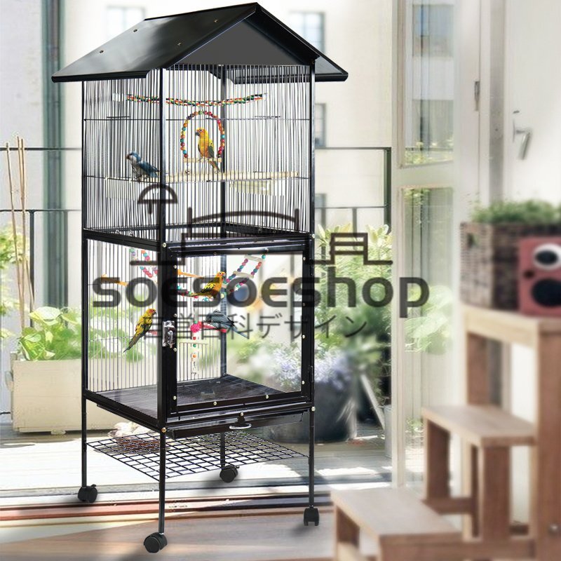 大型 2段式 バードケージ 鳥かご セキセイインコ コザクラインコ 文鳥 鳥 脱走防止 アクリル 鉄製 組立簡単 お庭用 外飼い 屋外用
