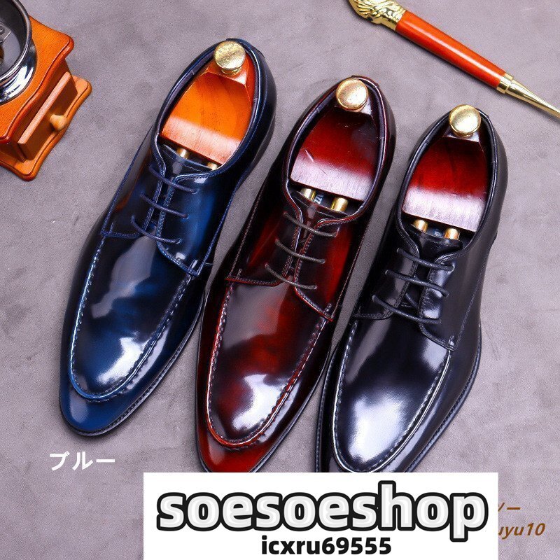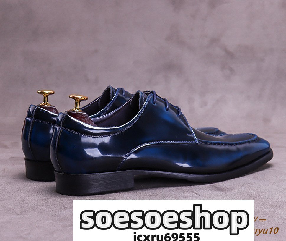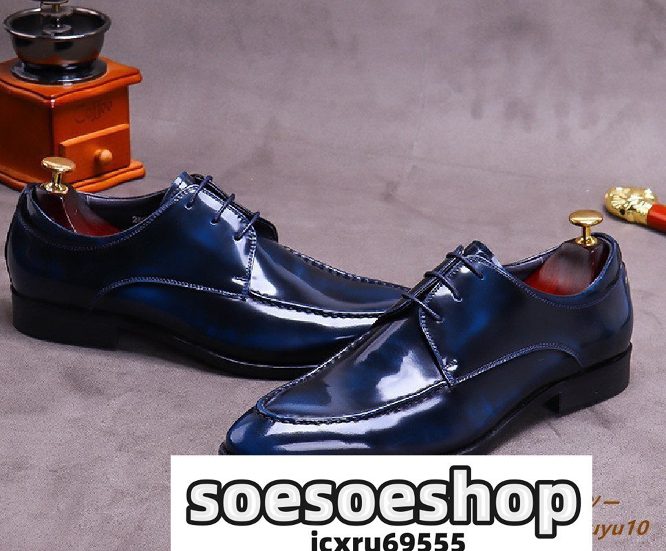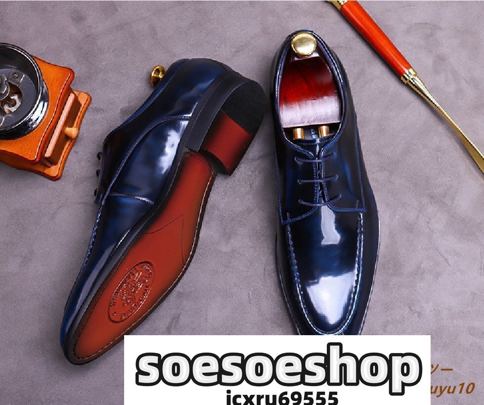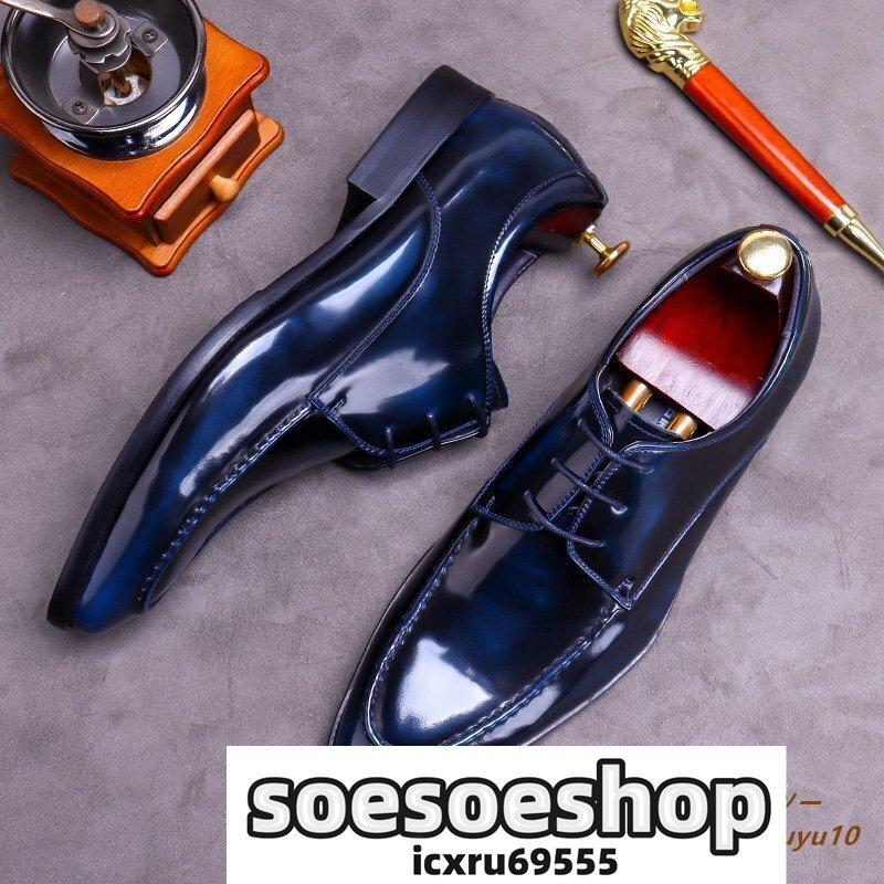最高級★定価8万 ビジネスシューズ メンズ 本革 レザーシューズ 上質牛革 フォーマル 紳士靴 ヴィンテージ職人手作り 革靴 ブルー 28.0cm