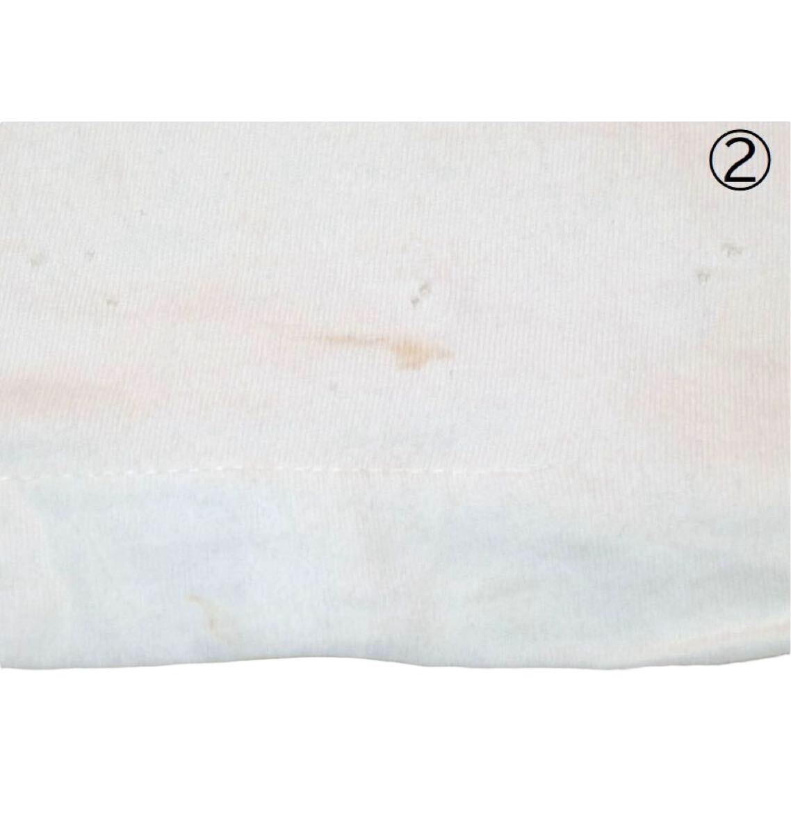裾にステッチの解れ、ボディと袖の接続部分に画像のような指摘されないと分からないサイズのピンホールが両袖で7箇所ほど