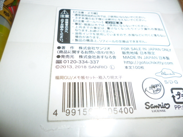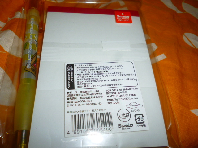 未使用 福岡限定 ぐでたま メモ帳 ボールペンセット 箱入り明太子 サンリオです。