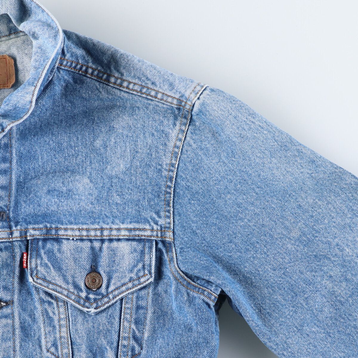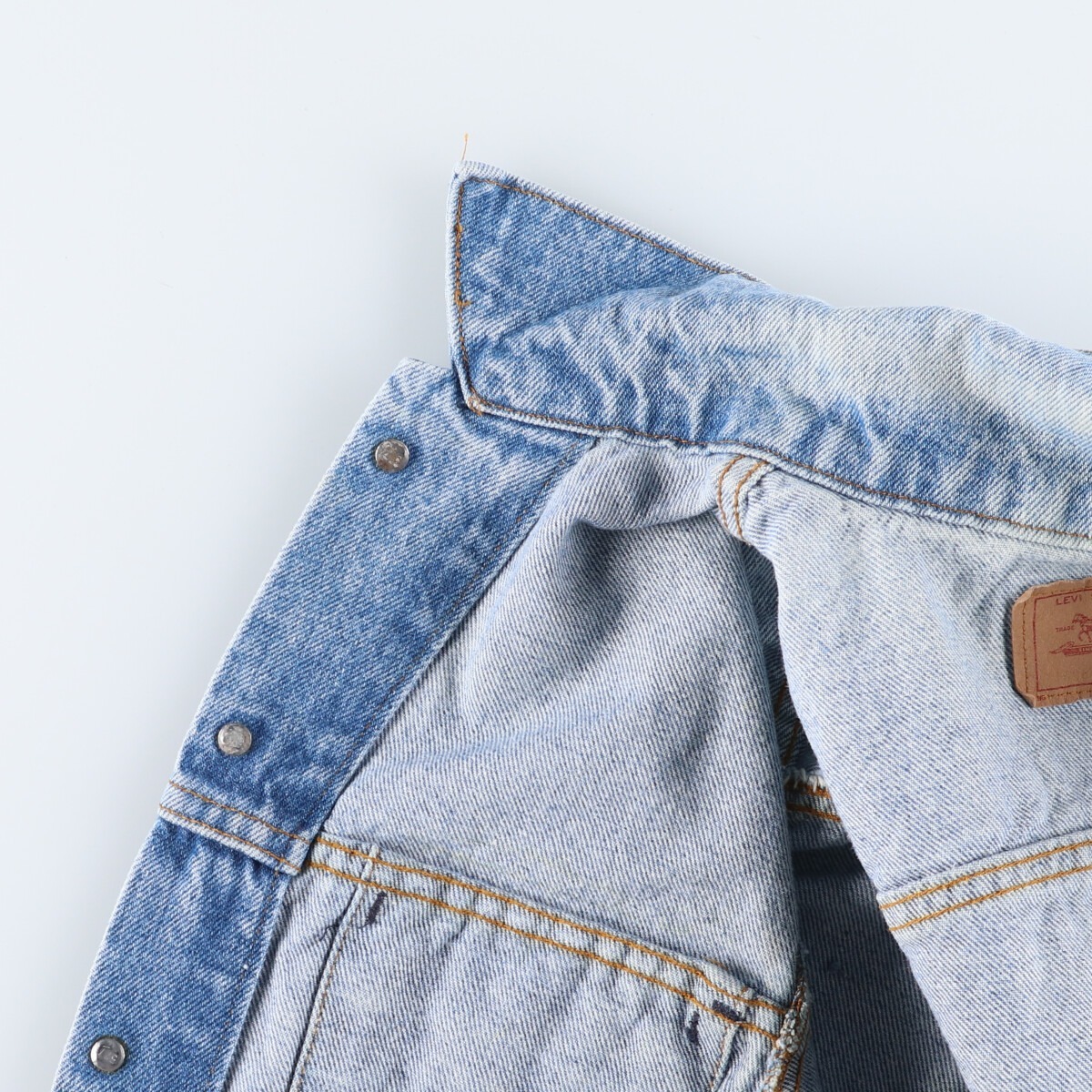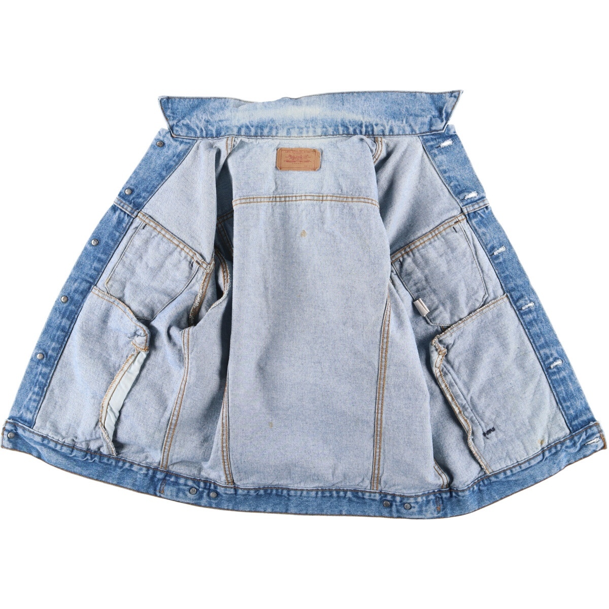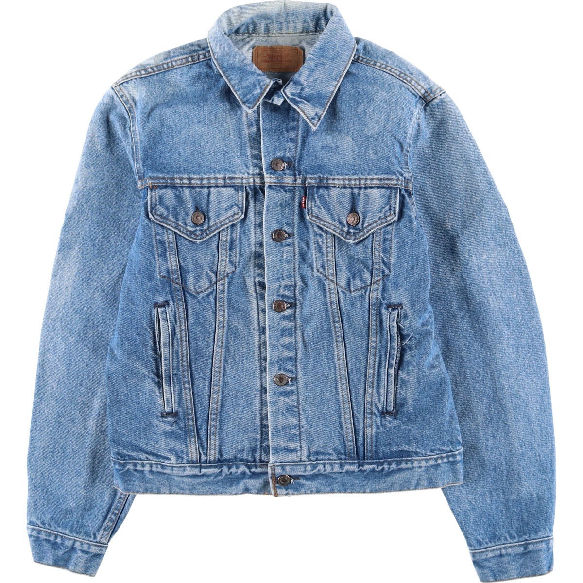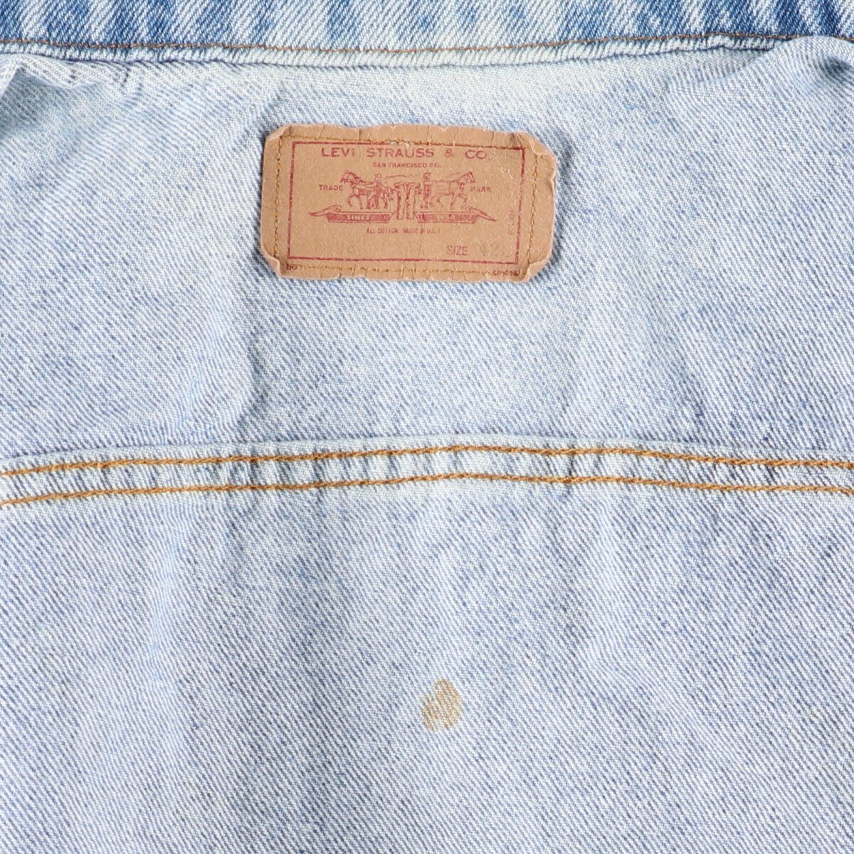 着用感: メンズL 表記サイズ: 42L 着丈: 60.5cm 身幅: 52.5cm 肩幅: 47cm 袖丈: 66.5cm ![]() | ![]() ランク:C USEDデニムですので使用感、擦れ、色落ちなどございますが、まだまだご愛用していただけます。 古着という事をご理解の上ご注文よろしくお願いします。 【状態追記】 ●前、右腕に汚れ ●前、左胸部品欠損 ●後、肩・背中・右腕に汚れ ●内側、襟・背中・腰・腹部・裾に汚れ |