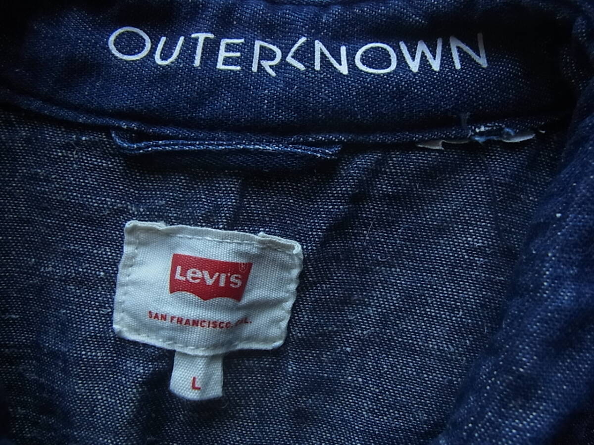 Levi's OUTER NOWN リーバイス アウターノウン コットンヘンプ素材 釦仕様 ウエスタンシャツ サイズ L 濃色のインディゴブルー