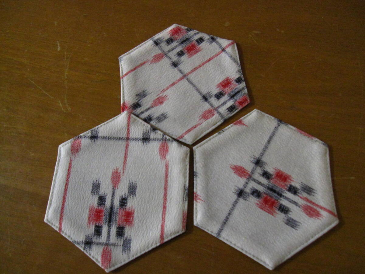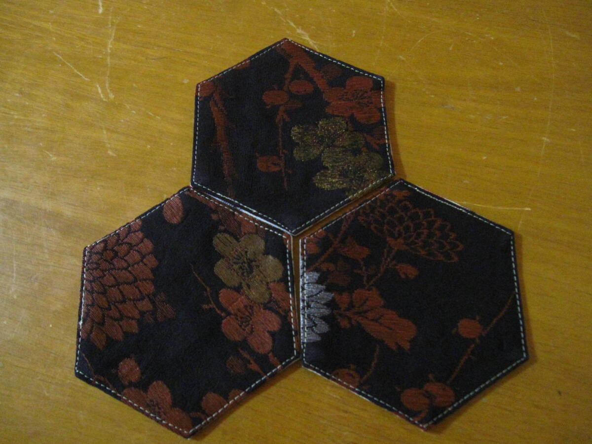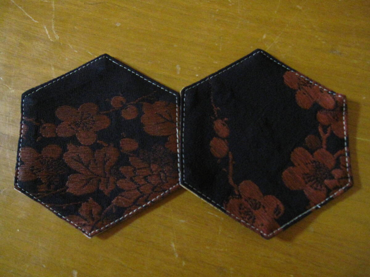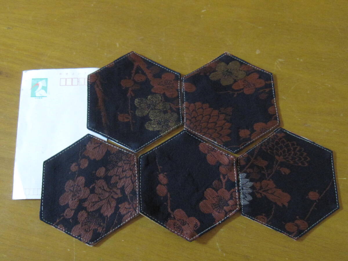 手作り 六角 コースター 着物リメイク 5枚 リバーシブル 花 模様 菊 梅 華 レトロ 兼用 秋冬 セット まとめて ハンドメイド 可愛 手芸 生地