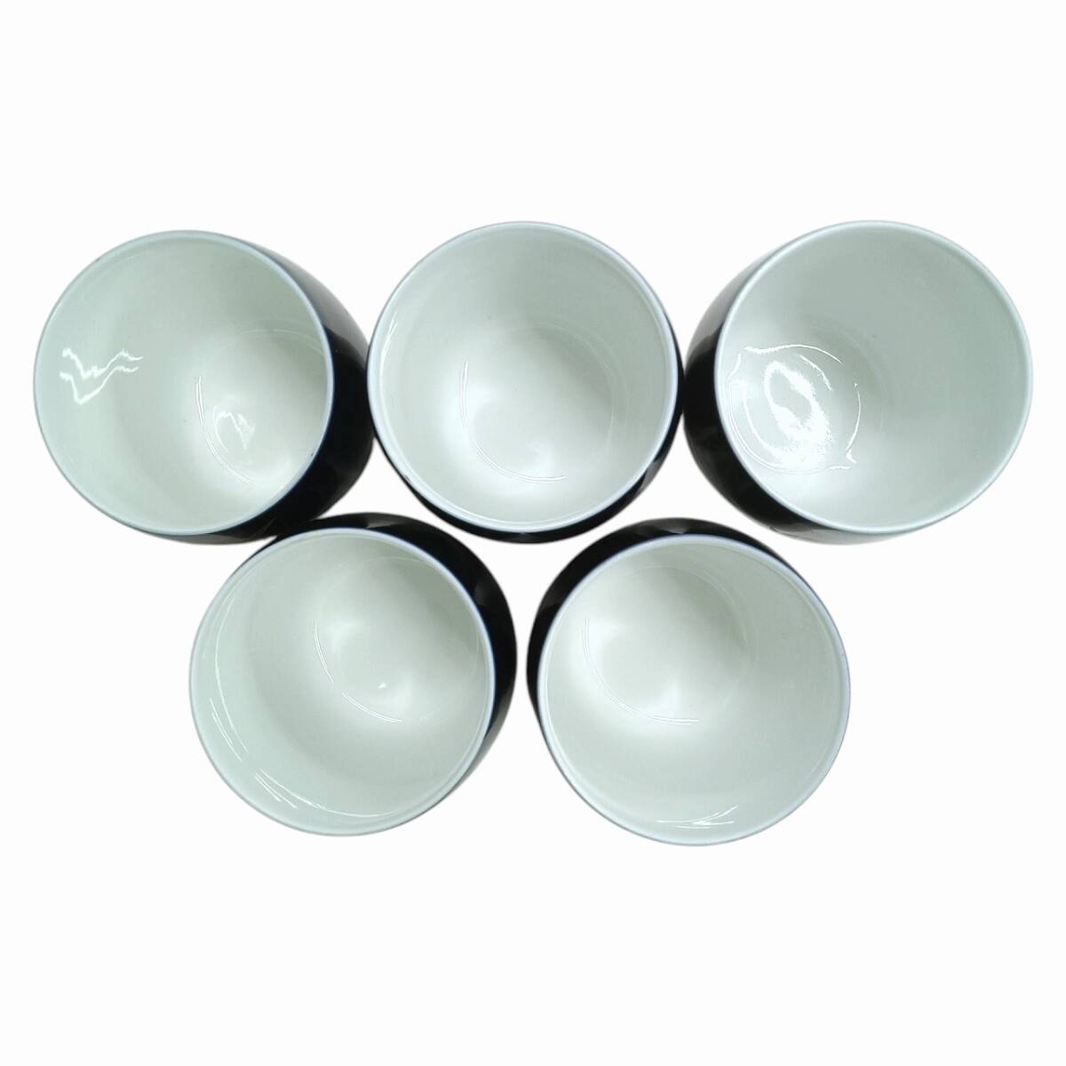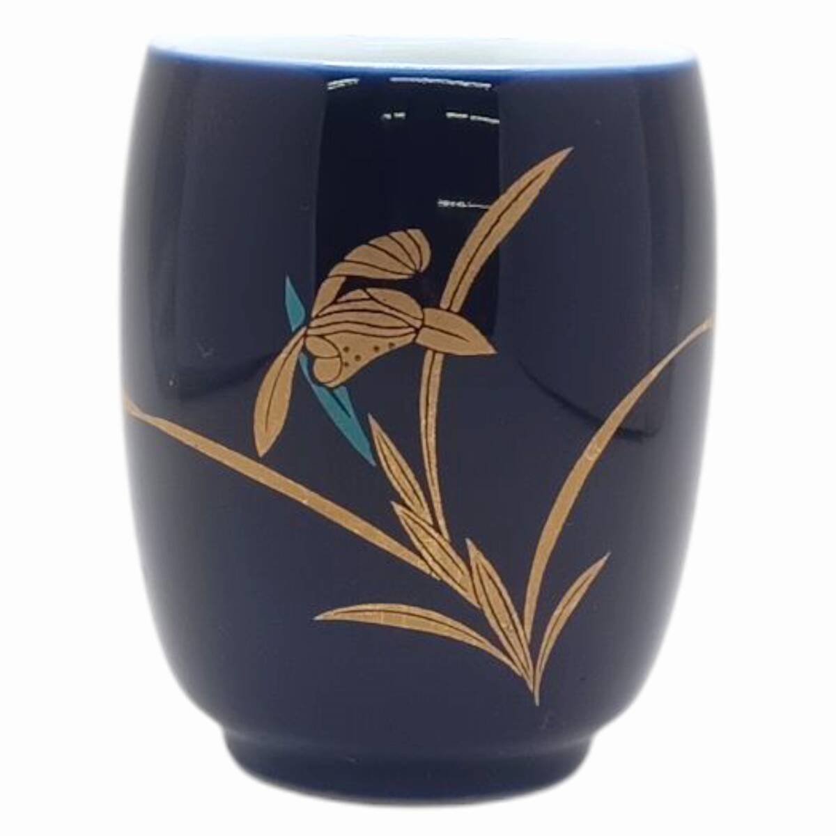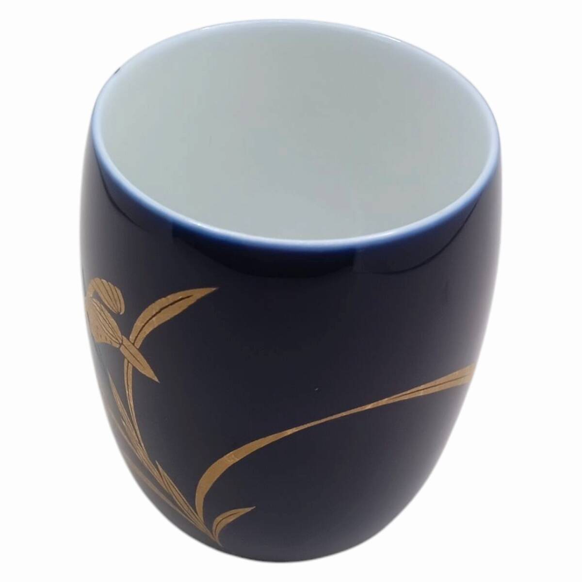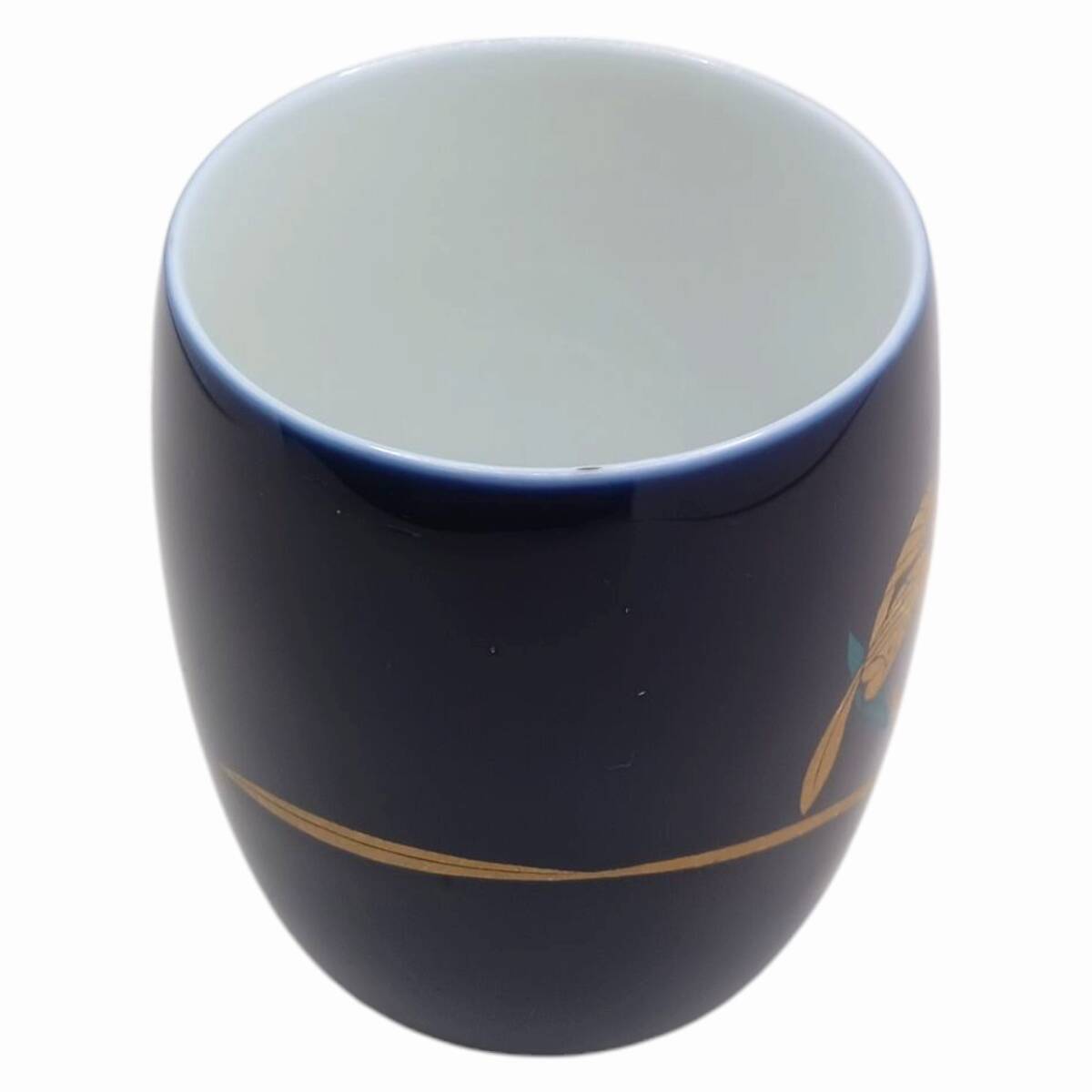 ¥1~ 香蘭社 瑠璃金彩 湯呑み 花柄 藍色 紺 ネイビー 陶器 茶器 5客揃 セット【中古】