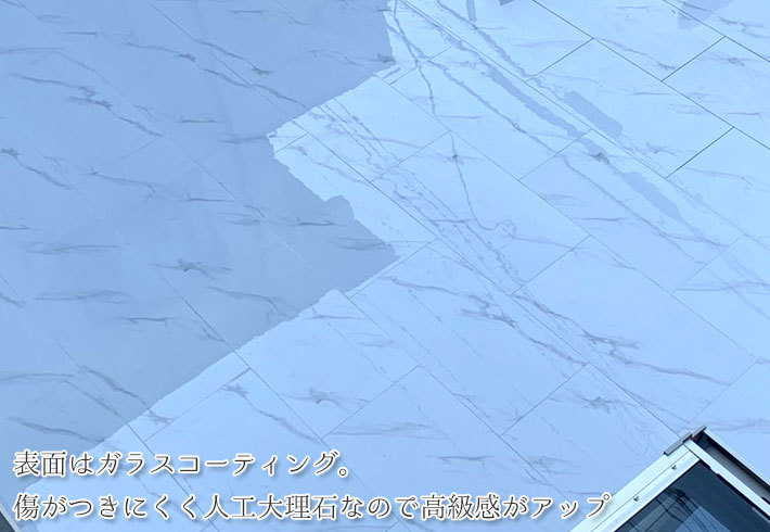 | 人工大理石 床 タイル 滑りにくい 傷つきにくい リフォーム ガレージ ガラスコーティング ホワイト フロアタイル 2枚よりご注文受付 | |