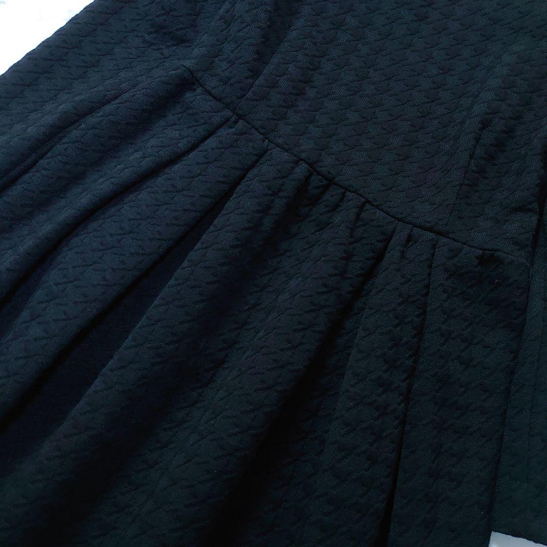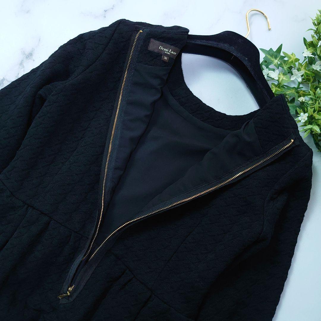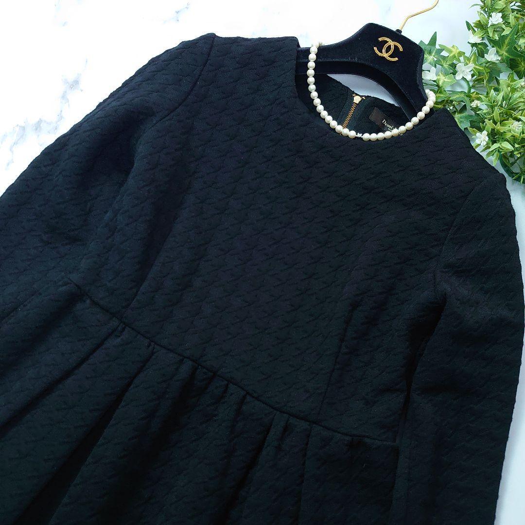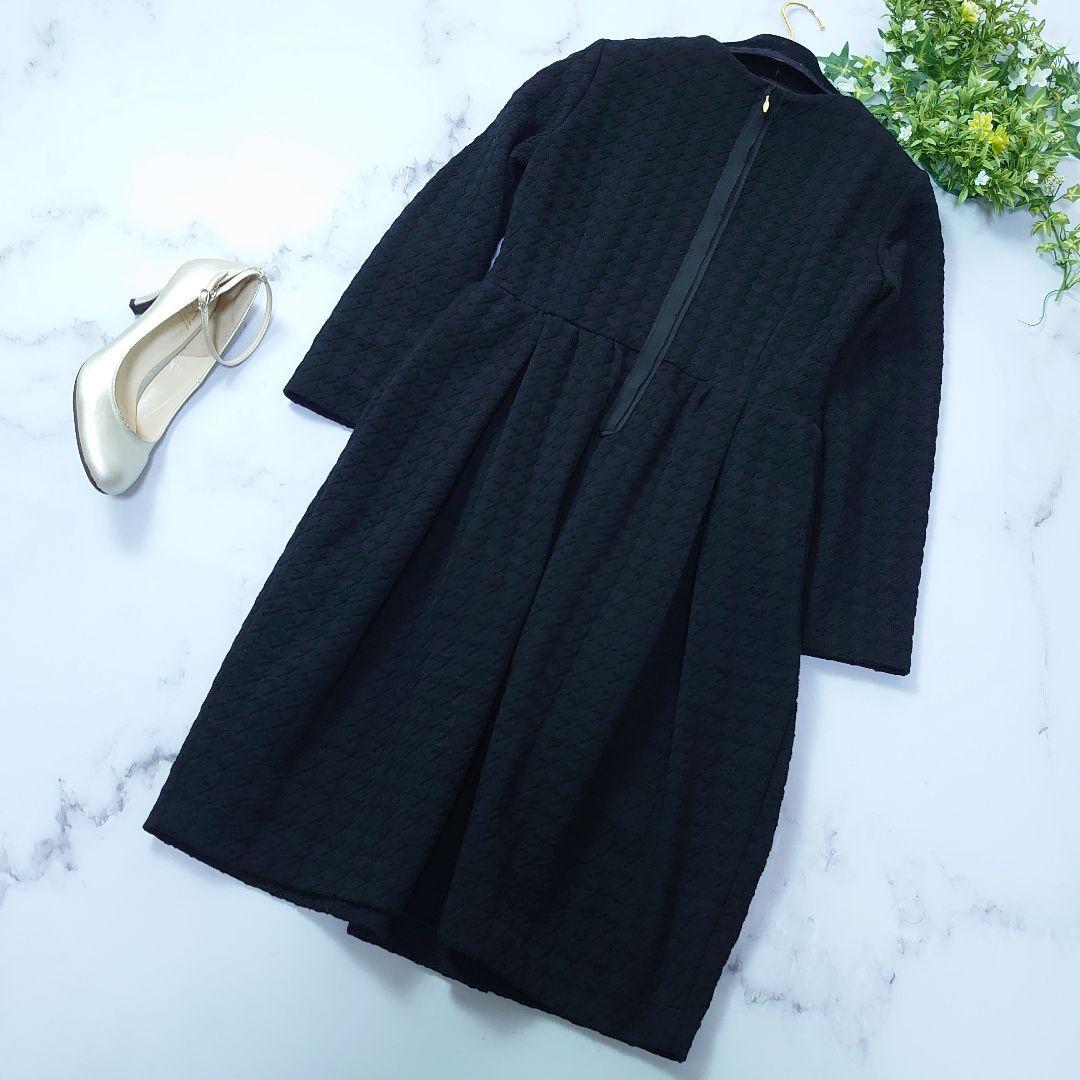 demi-luxe beams デミルクスビームス ジャガード 千鳥格子 グレンチェック ロングワンピース ギャザー タック フレア Aライン 黒 ブラック クルーネック 長袖 36 S相当 レディース