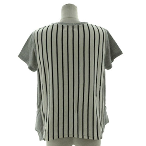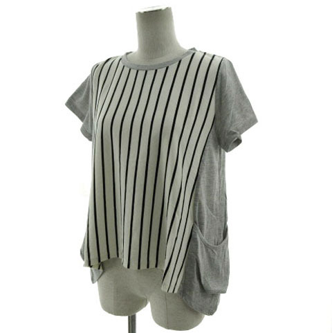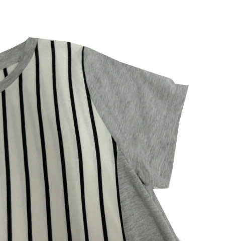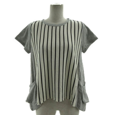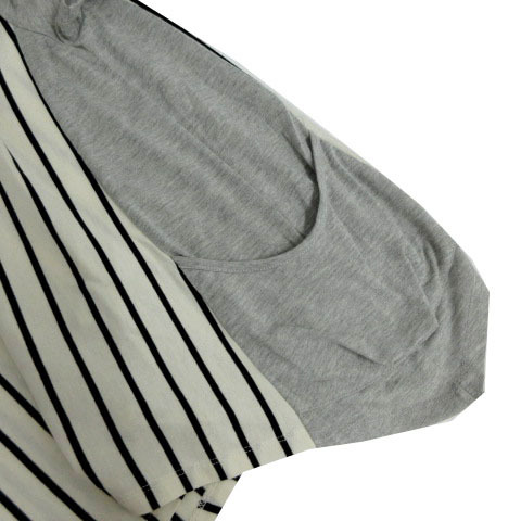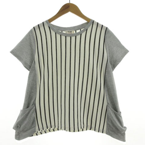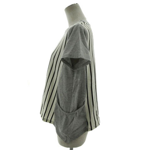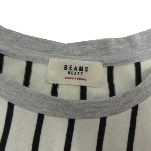 ビームスハート BEAMS HEART カットソー 半袖 サイドポケット 配色 コットン混 ストライプ アイボリー ブラック 黒 グレー