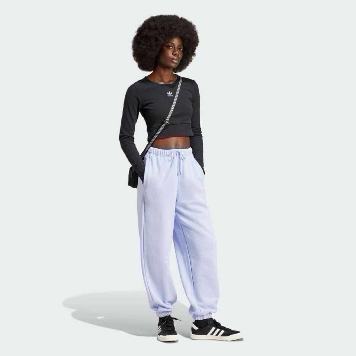ミニマルなデザインをベースにしながらも、高い美的センスを注入した、洗練された雰囲気のはき心地の良いジョガーパンツ。ソフトなフレンチテリーを使用して、ルーズなシルエットに仕立てた、デイリーウェアとして気楽に着られるデザインが魅力。片脚にあしらった小さなトレフォイル刺しゅうで、アディダスの誇りであるスタイルとスポーツを表現。ハイライズのウエストが着心地の良さを強調する、クロップトップとも好相性のモデル。