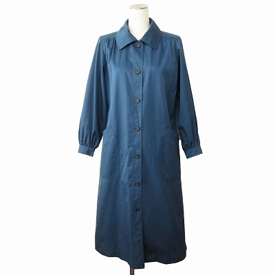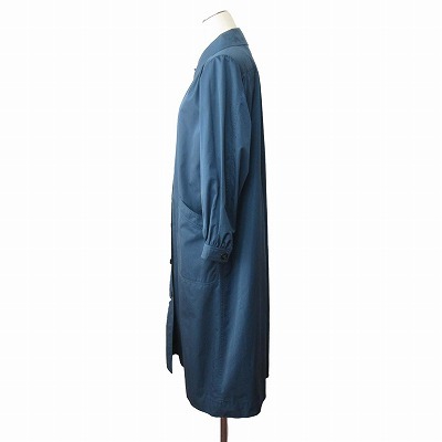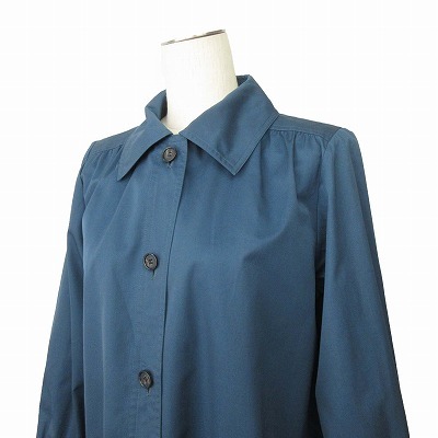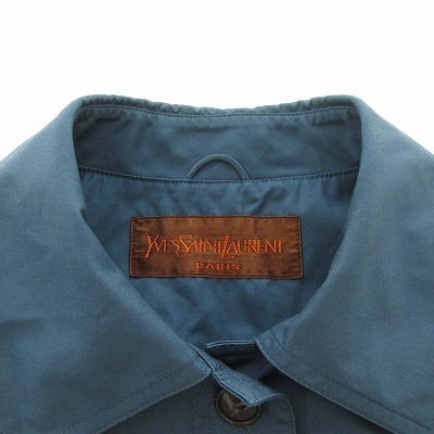 イヴサンローラン YVES SAINT LAURENT ヴィンテージ ステンカラーコート スプリングコート ギャザー 青 レディース