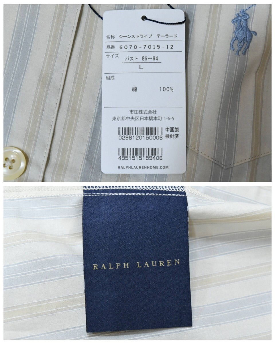 未使用 新品 ラルフローレン RALPH LAUREN ジーンストライプ テーラード Lサイズ シャツ ズボン パジャマ 部屋着 ナイトウェア 綿 レディース の出品です。