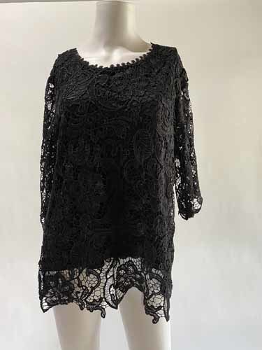 新品★黒★レースのトップス 礼服 ブラックフォーマル ブラウス パーティー 社交ダンス カラオケ Mサイズ 9号~11号