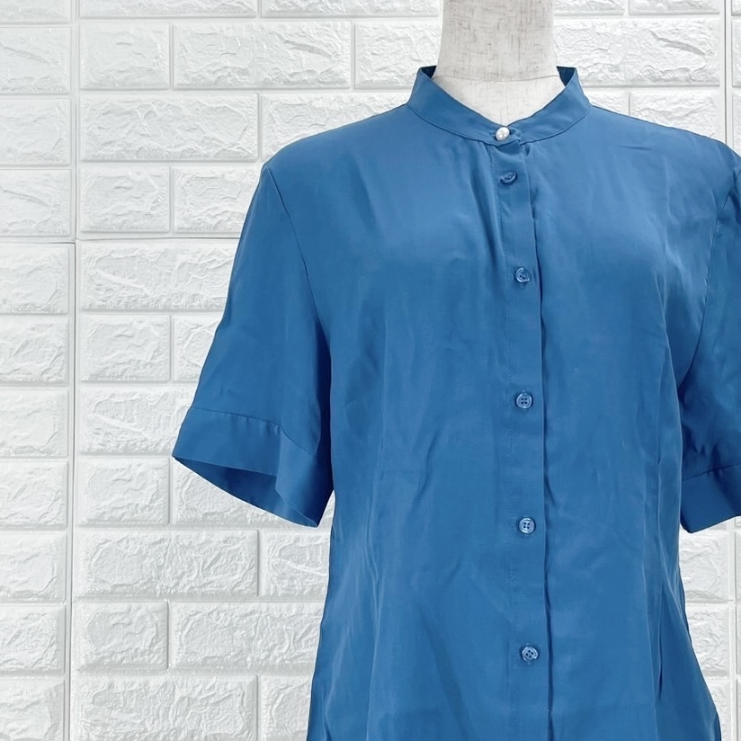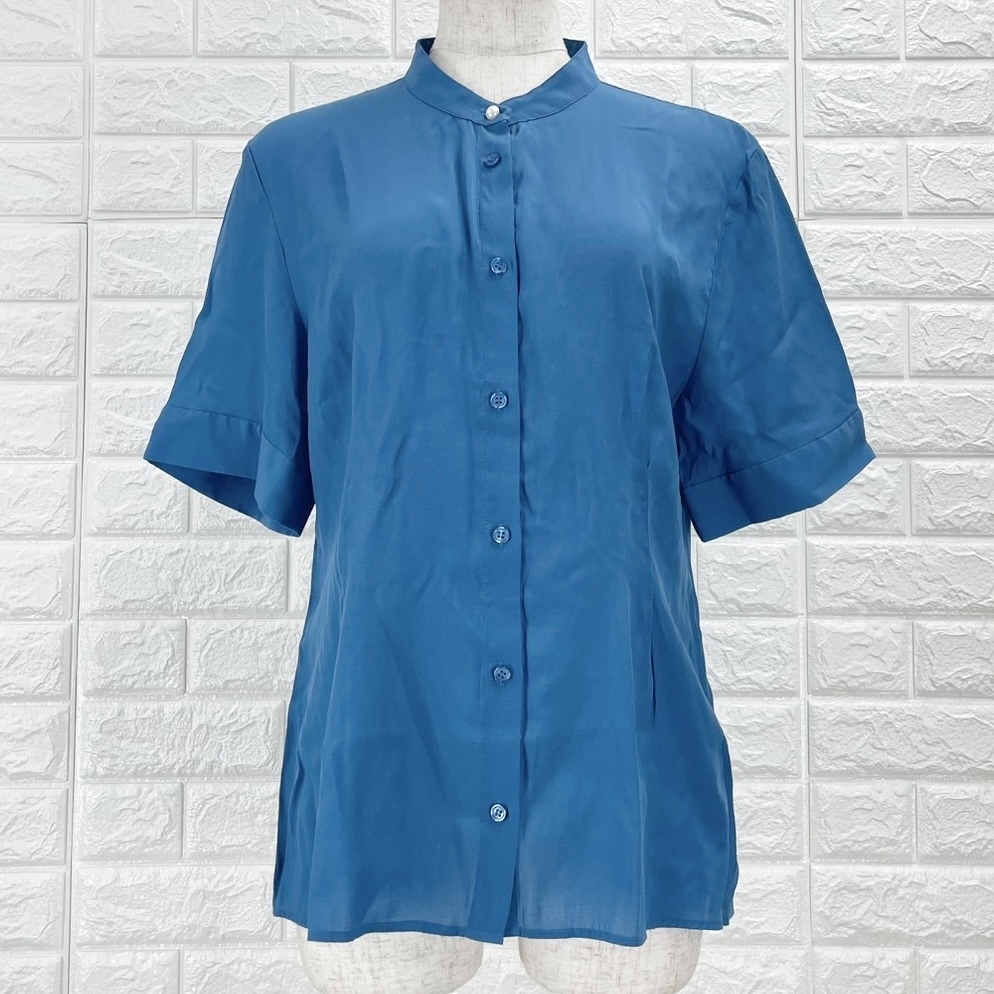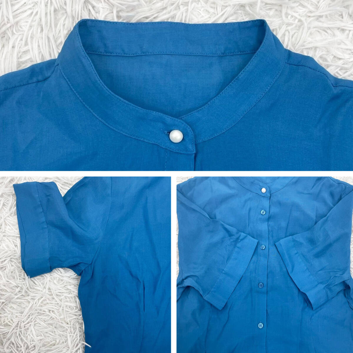 【A3442】A/C DESIGN BY ALPHA CUBIC エーシーデザインバイアルファキュービック ブラウス レディース ブルー 半袖 シンプル 春夏 Mサイズ
