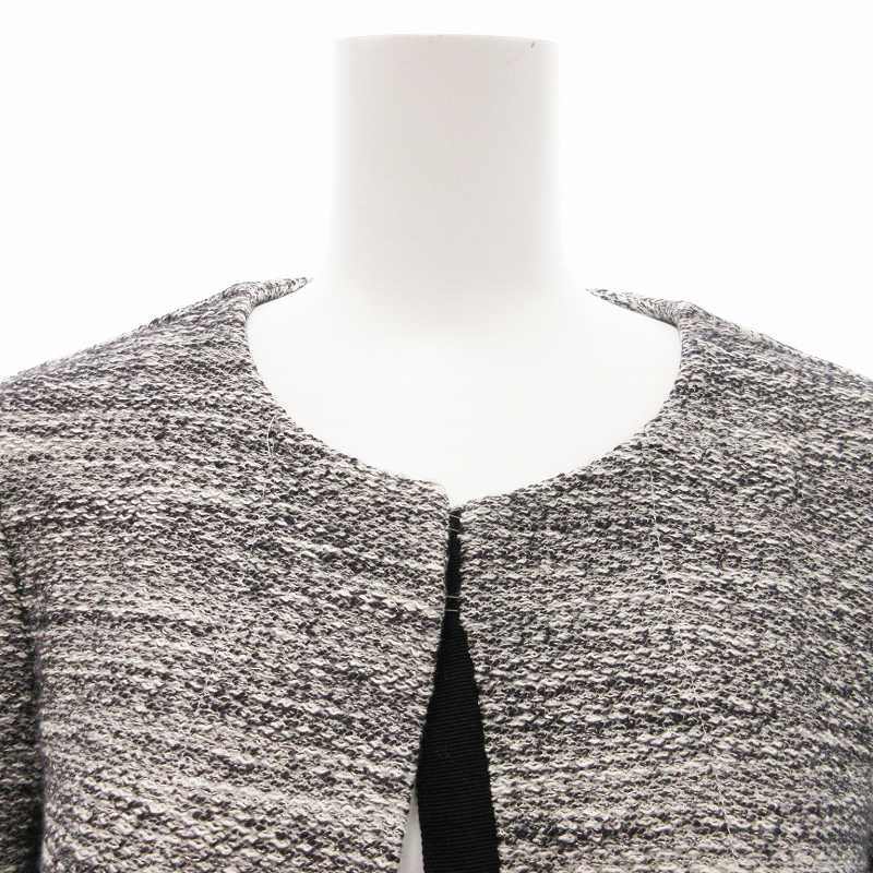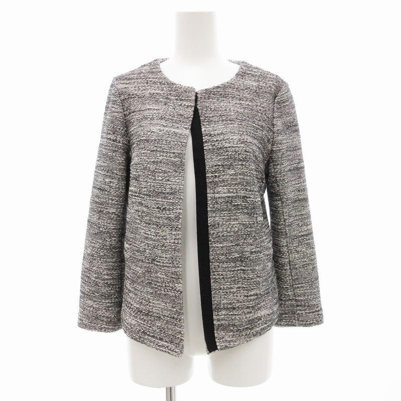 ユナイテッドアローズ UNITED ARROWS ラメニットツイードジャケット ノーカラー 38 グレー 3522-262-0769 /JS ■GY レディース