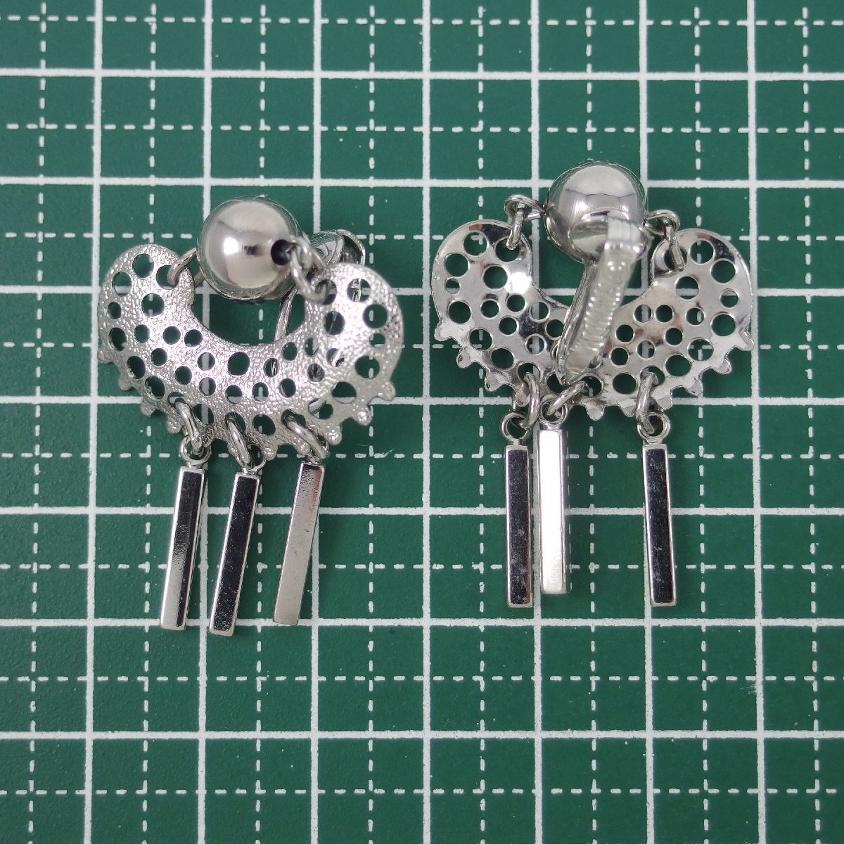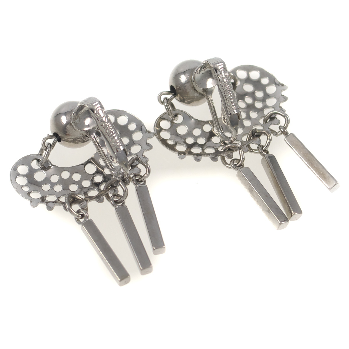 A10475◆【SARAH COVENTRY】 ◆ 3本のバー型チャーム ホワイトゴールドトーン サラ・コベントリー ◆ ヴィンテージイヤリング ◆