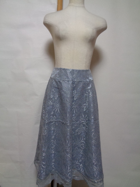 美品*ローラアシュレイ*11*総レーススカート*フレアースカート*フォーマル*ドレス*ラメスカート*ひざ丈スカート*オールシーズン*春夏秋冬*