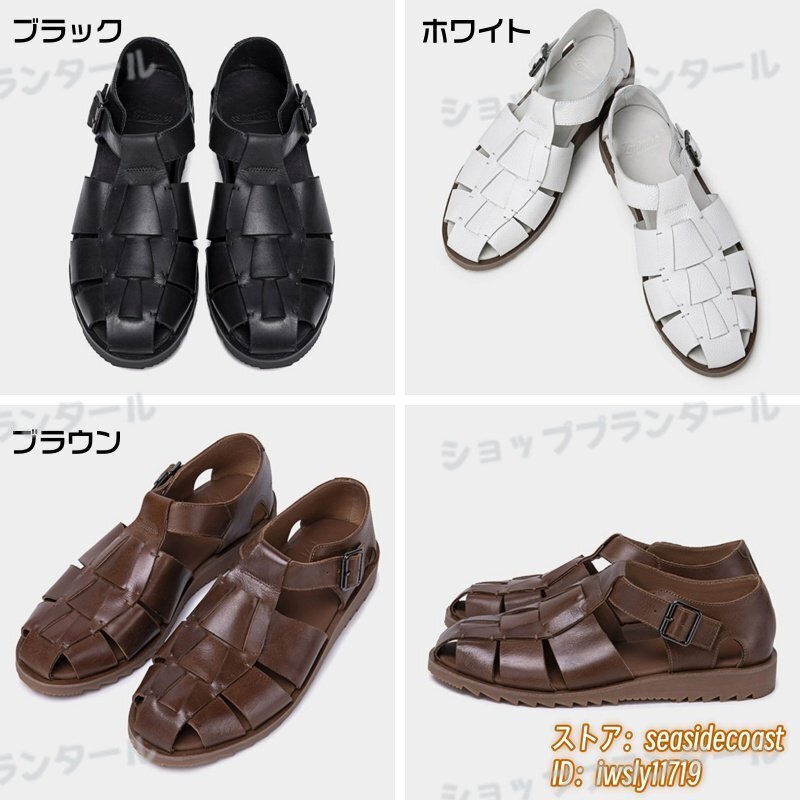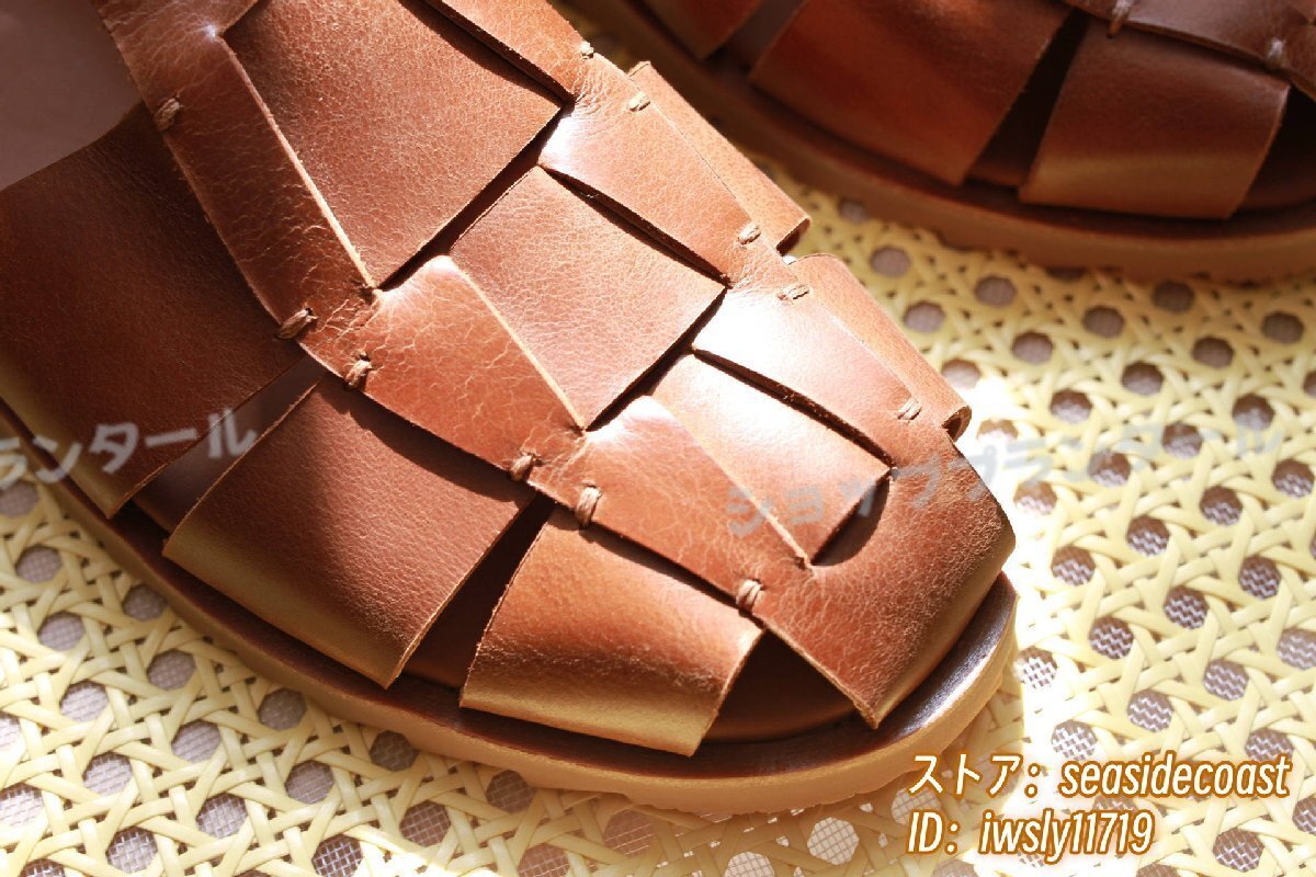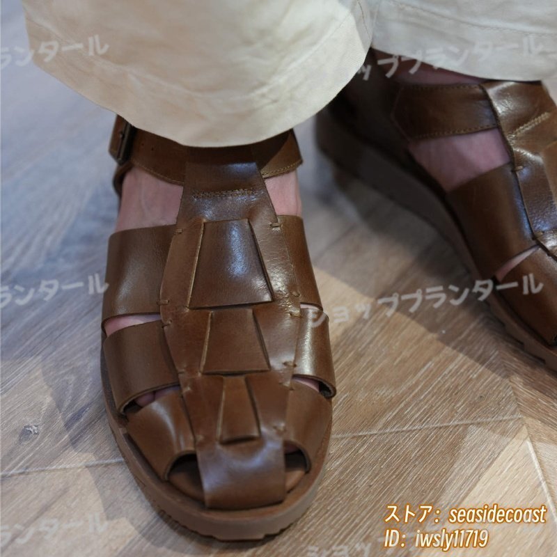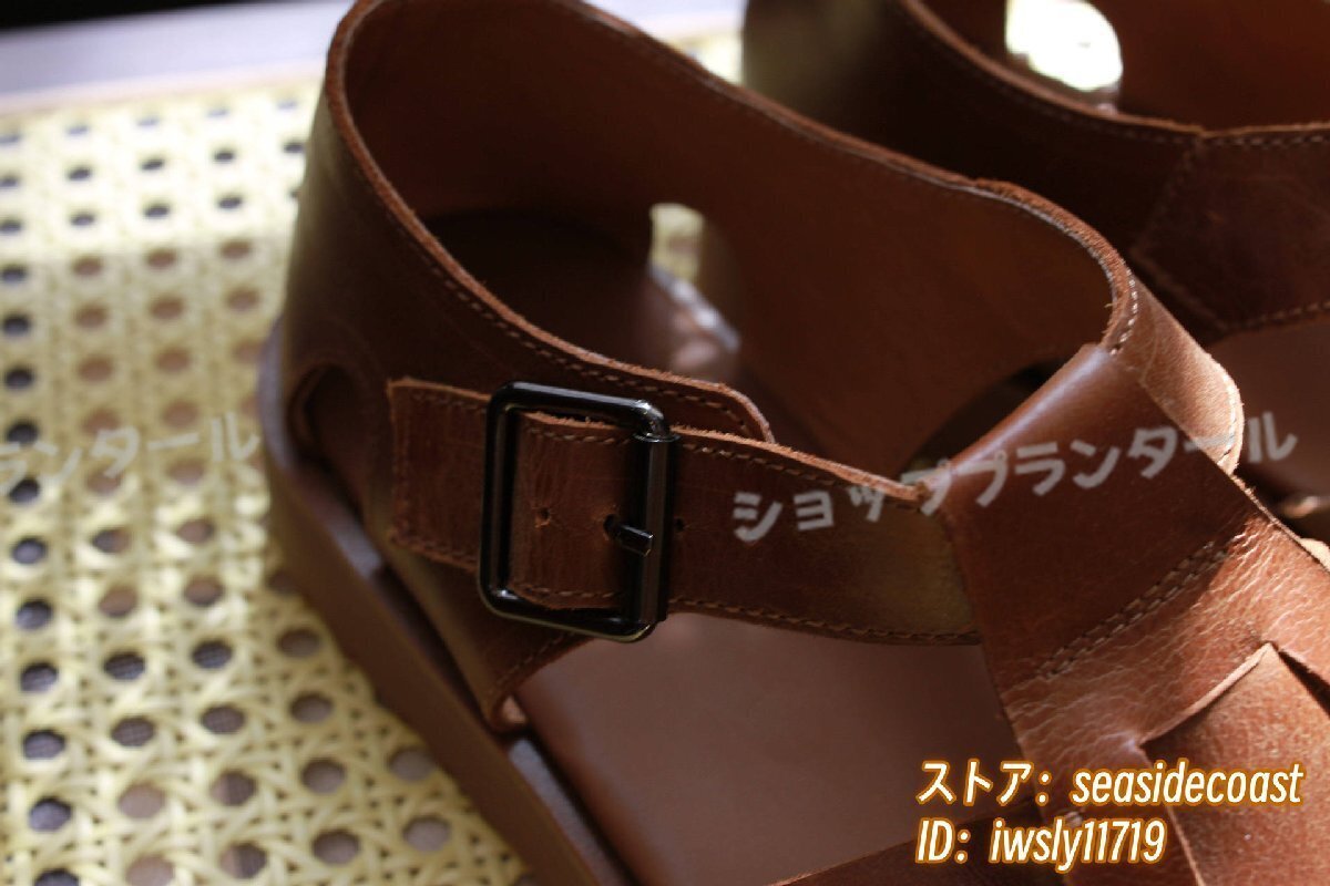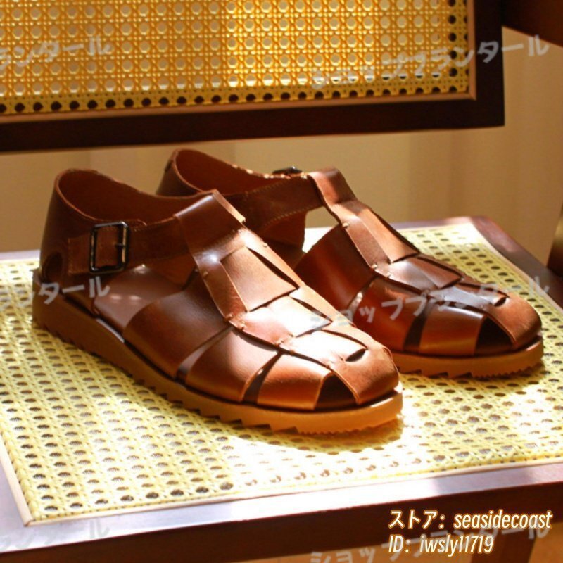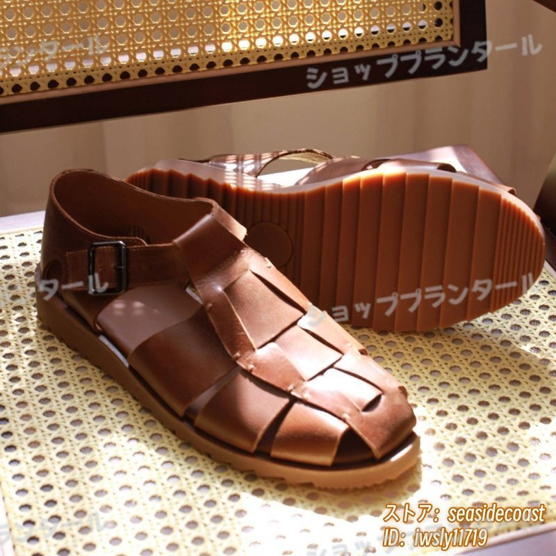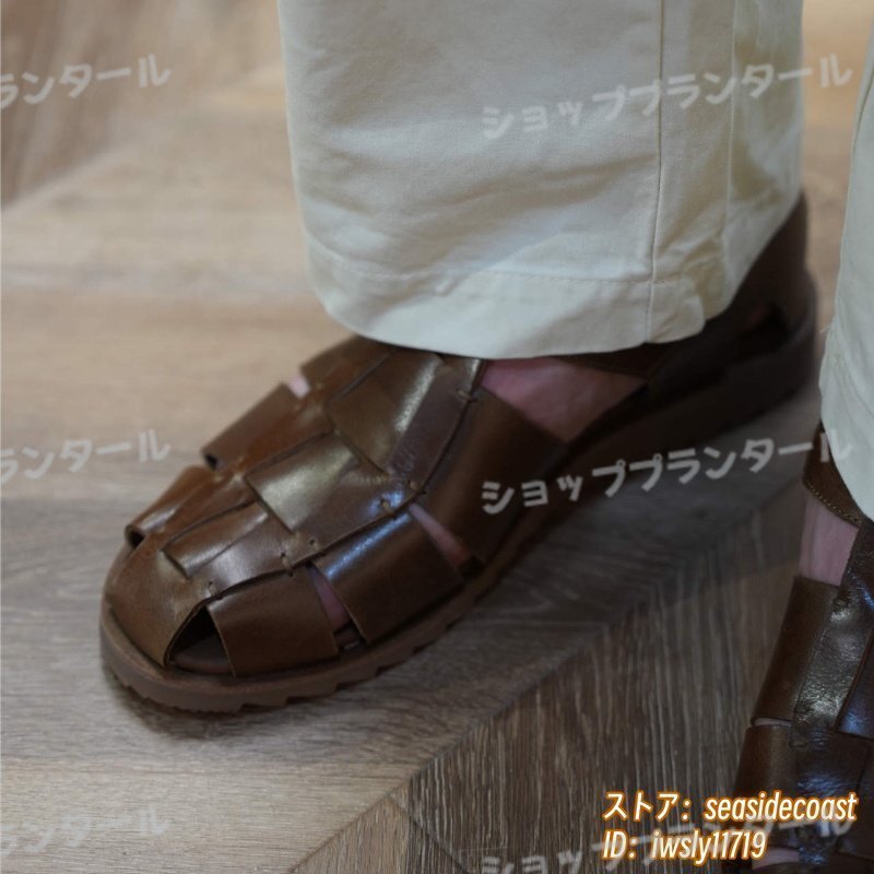 最高級★本革 グルカサンダル メンズ 牛革 レザーサンダル 編み込み 職人手作り ビジネスシューズ 革靴 紳士靴 ビーチ新品 ブラウン 26.5cm