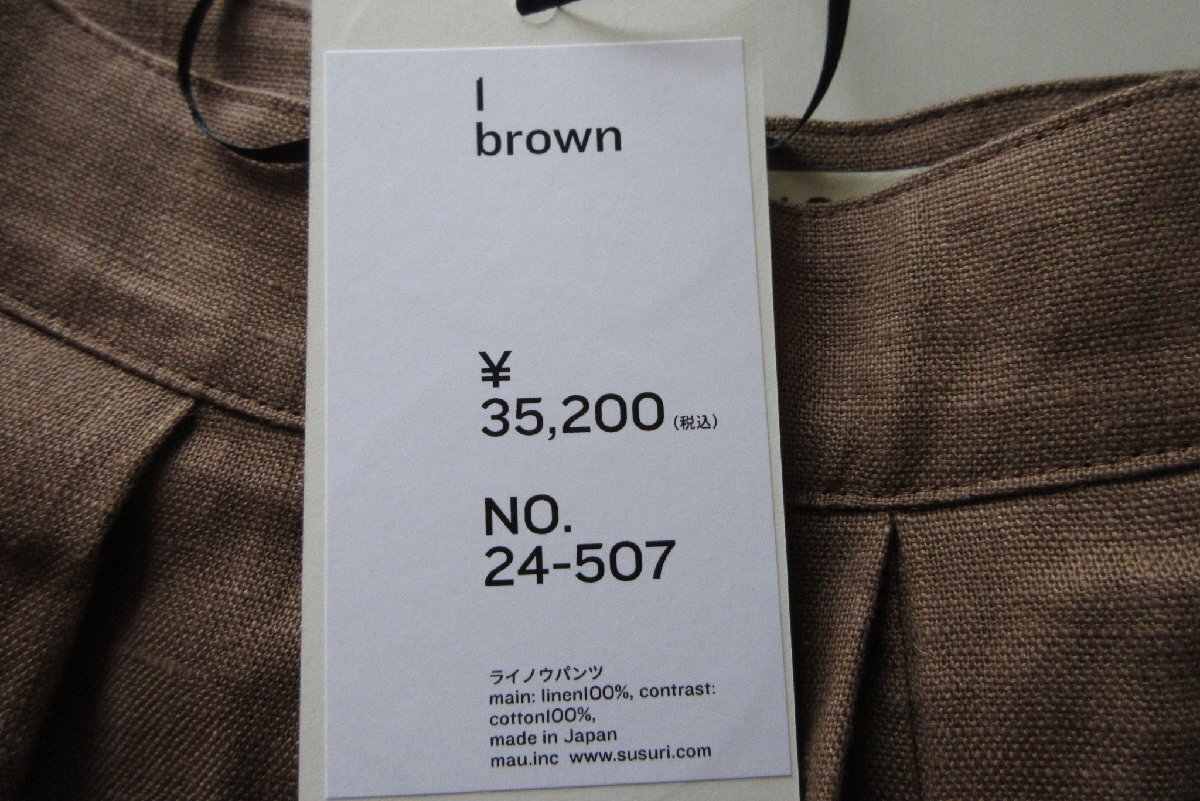 未使用 SUSURI / ススリ 24-507 ライノウパンツ 1 BROWN Textured Thick Linen / レディース ボールパンツ