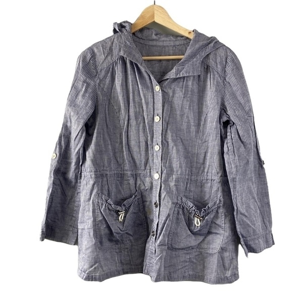 レリアン Leilian ブルゾン サイズ9 M - ネイビー×マルチ レディース 長袖/麻混/ストライプ/春/秋 ジャケット