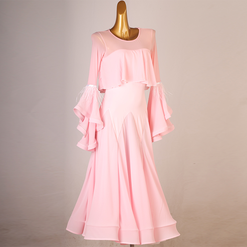 新品 レディース社交ダンス衣装 サイズセミオーダー対応 モダンダンス練習ドレス ピンク S~2XL