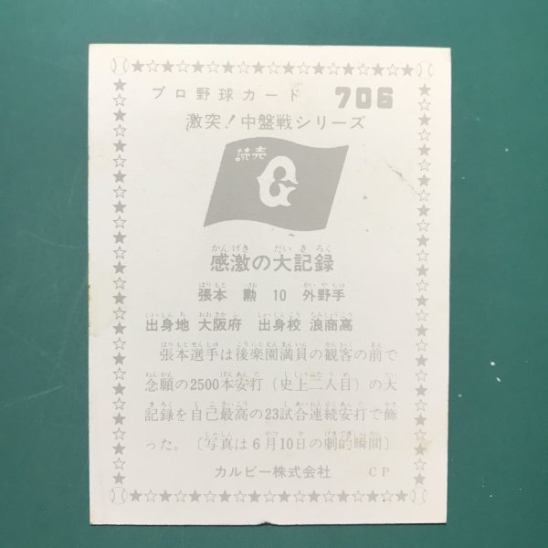 1976年 カルビー プロ野球カード 76年 706番 巨人 張本    -WWG97