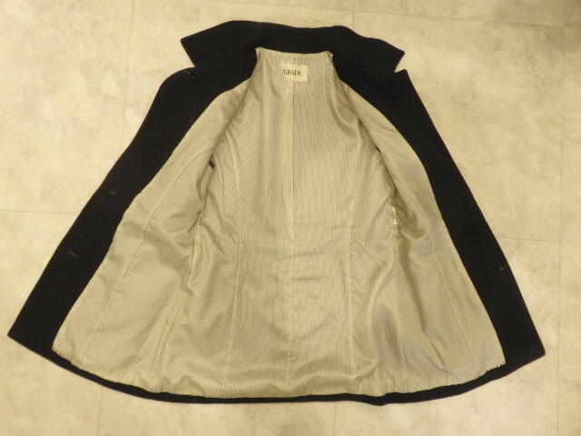 ■上質美品 東京スタイル【 GRADE 】グレード 高級 ウール コート ジャケット 9号 M 黒 ブラック c307