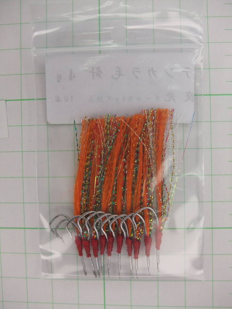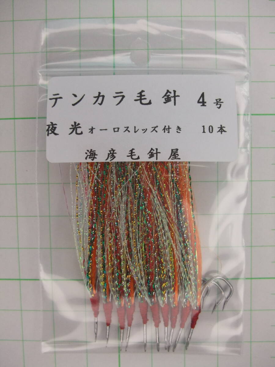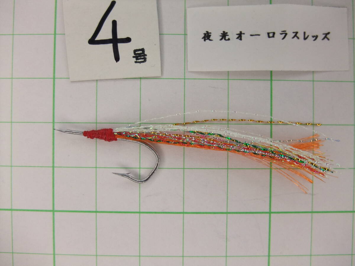 4OYOS  テンカラ毛針4号  イソ縄毛針  オレンジフラッシャー 夜光オーロラスレッズ付き   10本セット