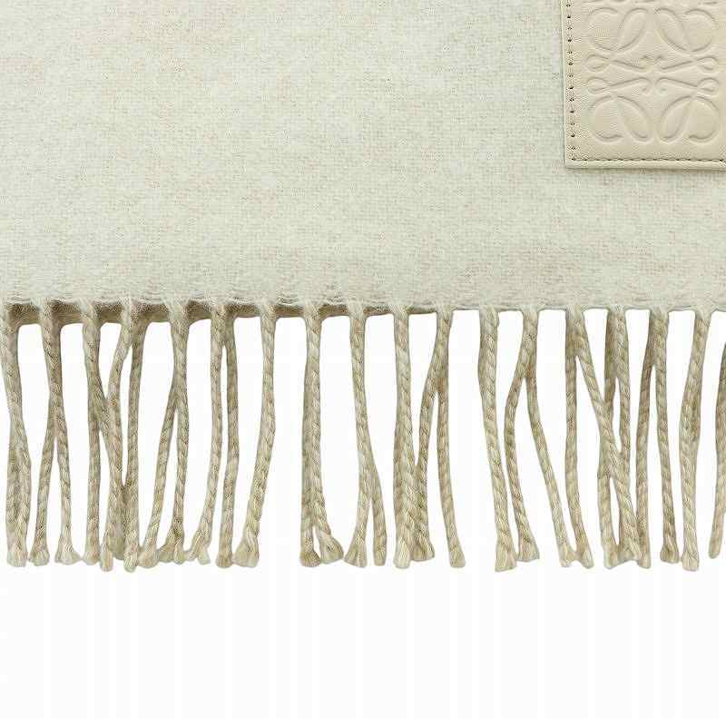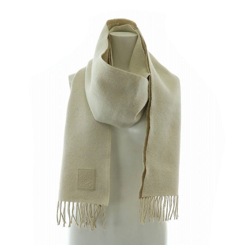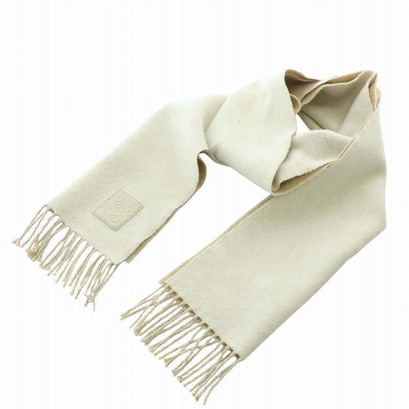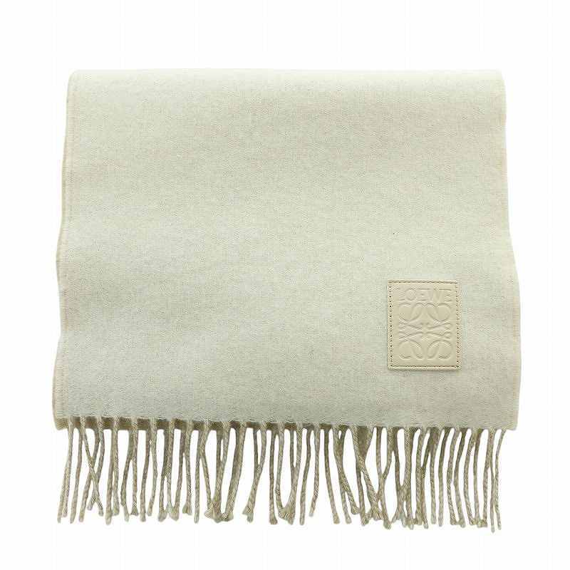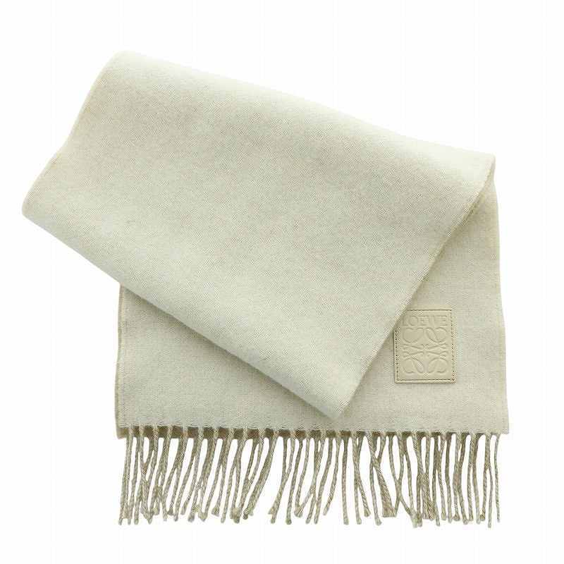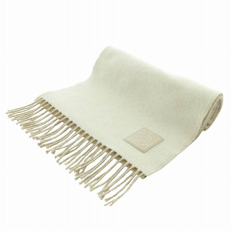 ロエベ LOEWE マフラー ストール ウール カシミヤ混 フリンジ ロゴ 白 ホワイト ベージュ A-28003861 /XZ ■GY37 メンズ