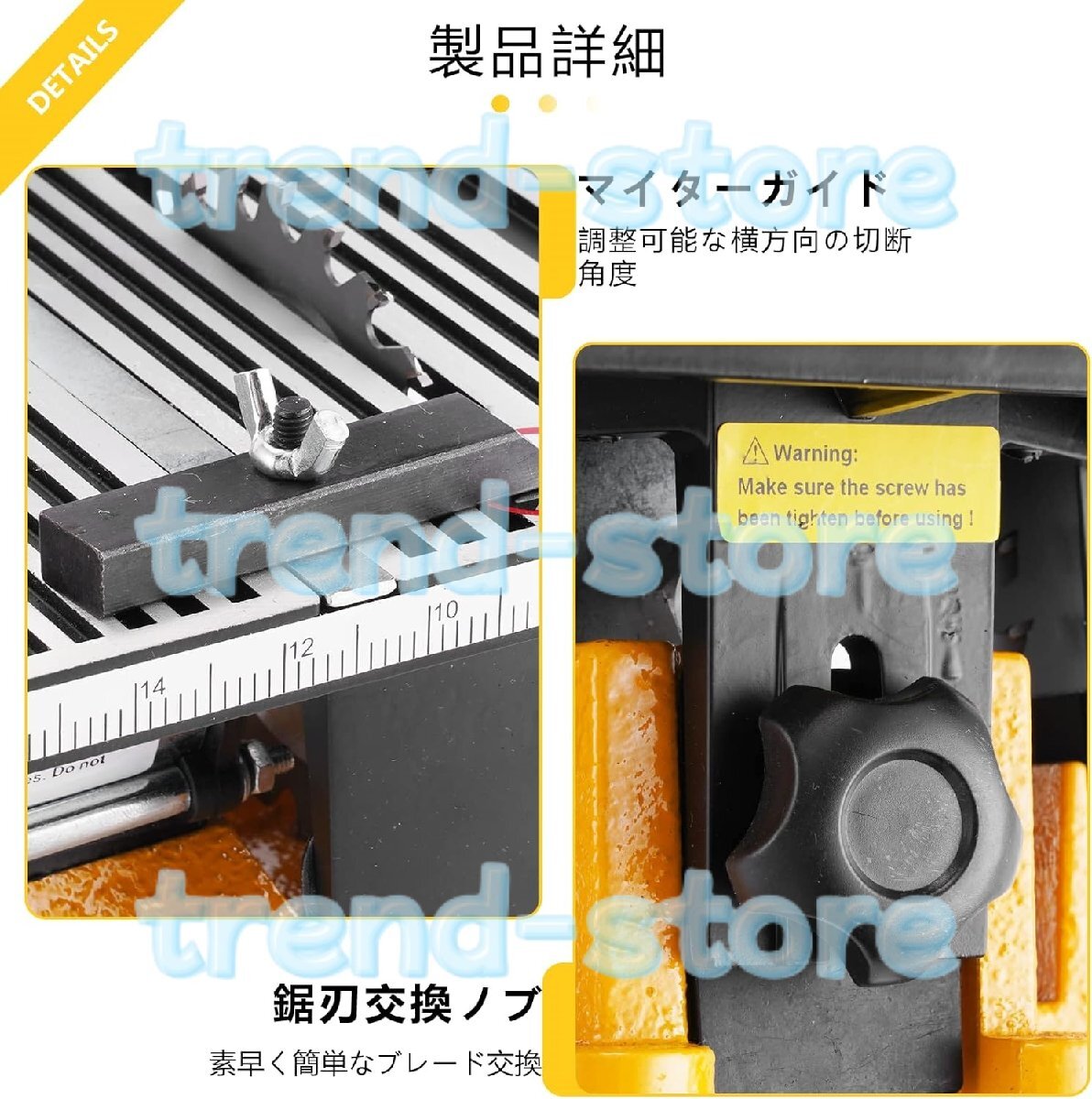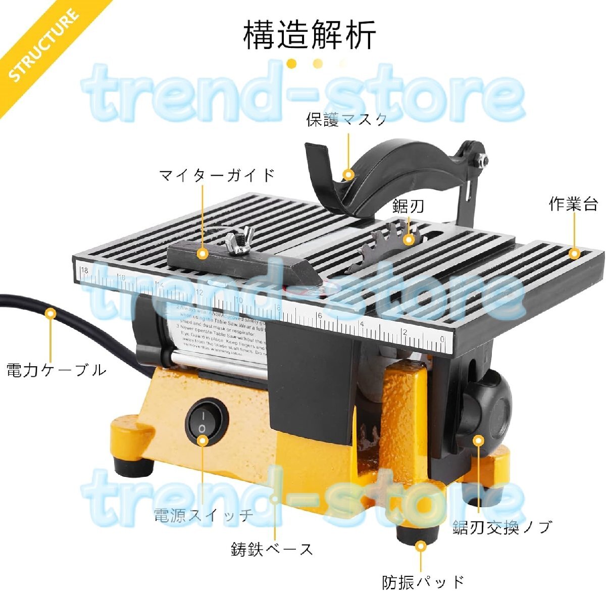 安全性と耐久性:高品質のアルミニウム合金と銑鉄で作られた当社の電気テーブルソーは、耐久性と安全性を考慮して設計されています。過負荷保護機能と最適な温度を維持するための湾曲した通気口を備えており、機械の寿命を延ばし、安全な使用を保証します。