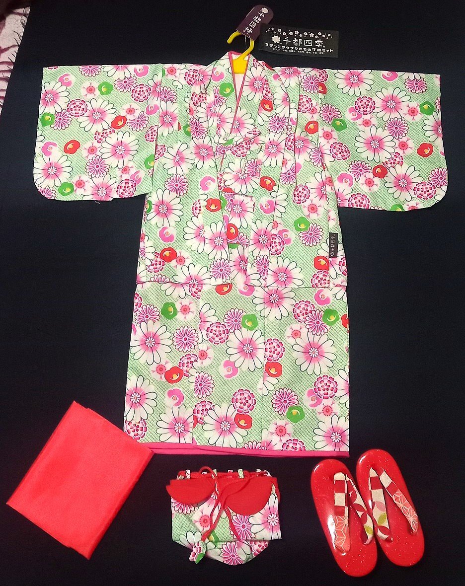 | 【説明】 女の子 お着物6点セット 3~4歳 用です。 着物、被布、長襦袢(腰紐、半衿付)、巾着、草履、兵児帯 商品サイズ 着物:身丈 約95cm、袖丈 約30cm、裄 約44cm 被布:着丈 約48cm 長襦袢 草履:長さ18cm 着物・被布:ポリエステル 100% 長襦袢:ポリエステル 100% ☆☆他にもたくさん出品しております!是非ご覧下さい!☆☆ 商品及びその他の内容でご不明な点がございましたら、遠慮なく質問下さい。 |