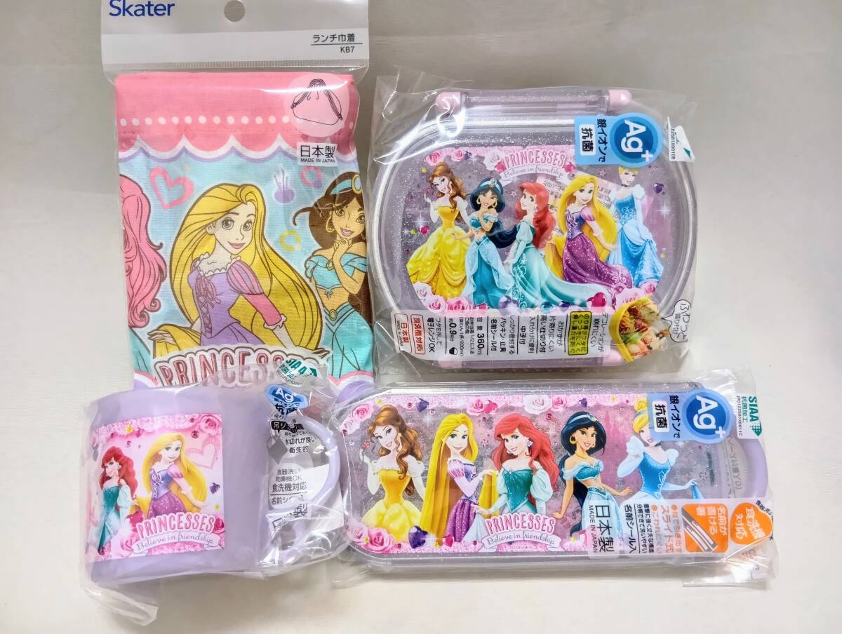 | スケーター(Skater)の新品未開封の子供用キャラクターランチボックスセットです。 お弁当箱・トリオセット・コップ・お弁当袋の4点セット。 ディズニー アリエル・ラプンツェル・ベル・ジャスミン達のデザインです。 ピンク、パープル系。お弁当箱のフタにラメ入り。 同シリーズでのセット品ですので、こどもの入園準備や入園入学セットとしておすすめです。 幼稚園・保育園の運動会や遠足の準備にも。 その他のキャラクター360mlお弁当箱4点セットも出品中です♪ プリンセスのお弁当箱セット♪ ディズニーのお弁当箱セット♪ 女の子におすすめのお弁当箱セット♪ <セット内容>〔シリーズ名:プリンセス24〕 ①【抗菌ふわっとフタタイトランチボックス 1段 360ml/QAF2BAAG】 中子付き。フタを外して電子レンジ可。食洗機対応。名前シール付。 ●容量:360ml(中子1個付き) ●商品サイズ約:横148×奥行123×高さ56mm ●日本製 ●JAN:4973307659782 ②【抗菌トリオセット/TACC2AG】 スライド式のお箸・フォーク・スプーンとケースのセット。 食洗機対応。名前シール付。 ●商品サイズ約:ケース198×76×17mm、箸16.5cm、スプーン・フォーク13cm ●重さ:150g ●日本製 ●JAN:4973307659768 ③【ランチ巾着/KB7】 巾着袋のお弁当入れ。 ●商品サイズ約:290×165×120mm ●品質表示:綿100% ●日本製 ●JAN:4973307659836 ④【抗菌プラコップ/KE4AAG】 飲料用、歯磨き用のカップ。 電子レンジ可、食洗機対応。名前シール付き。 ●容量:200ml ●商品サイズ約:直径74×68mm(取っ手含まず) ●日本製 ●JAN:4973307659775 ==== 参考価格:定価5,005円(税込合計、送料別) その他注意事項: ・バラ売りには対応していません。即購入OKです。 ・送料込みの出品ですのでお値下げ交渉はご遠慮ください m(_ _)m ・すり替え防止のため不具合以外の理由での返品は受け付けておりません。 ・上記ご理解いただける方のみ購入をお願いします。 Disney Princess Japanese Lunch Bento Box Set with Bag for Toddlers Kids Girls キャラクターお弁当箱セット出品中♪ |
