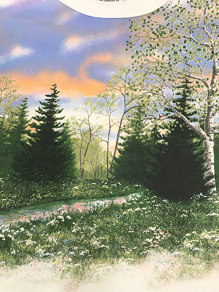 夕日に染まった風景画が袖にまで描かれたデザインです。