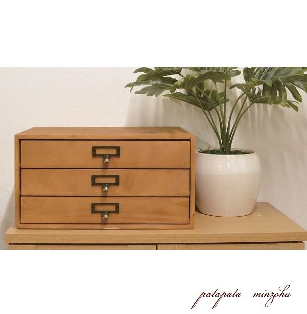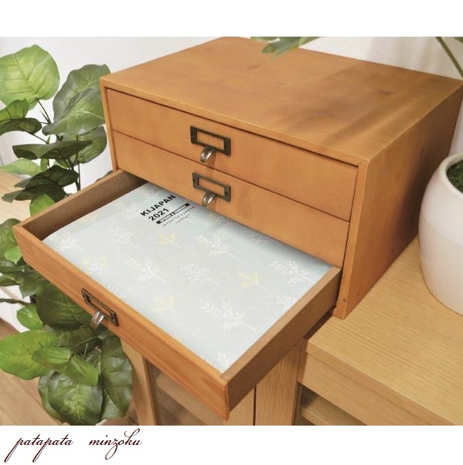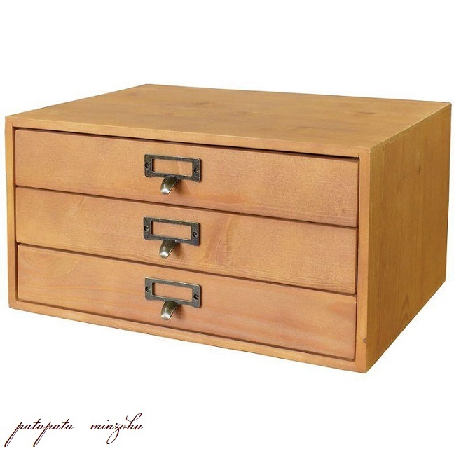 木製 3段 引出し 書類ケース A4サイズ 書類棚 アンティーク調 ボックス ディスプレイ 小物入れ