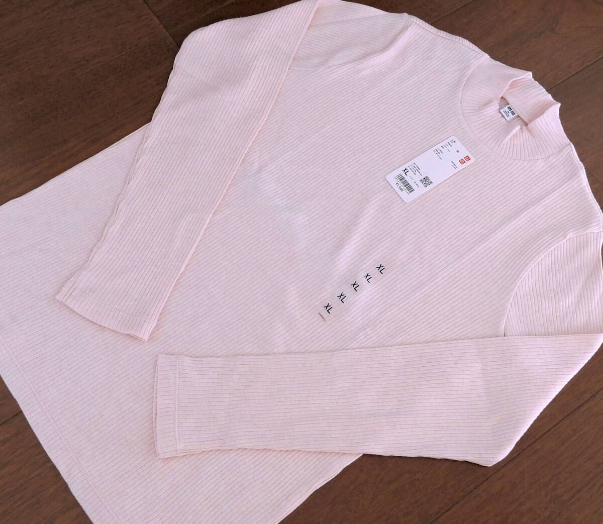 ユニクロ UNIQLO リブハイネックT 長袖 WOMEN ピンク XLサイズ【新品未使用】