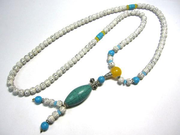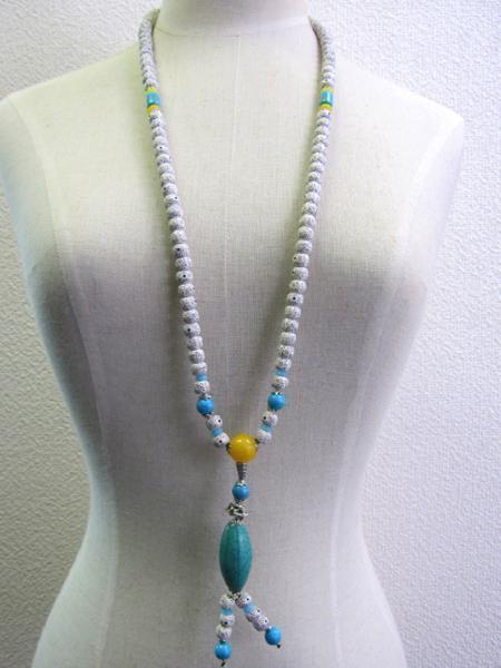 トップが特徴的なウッド使用のロングネックレスです。