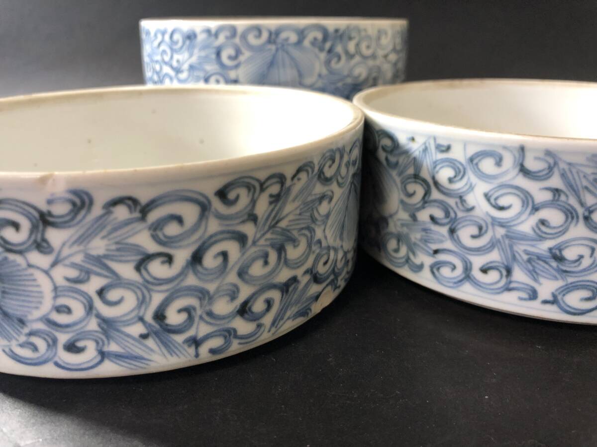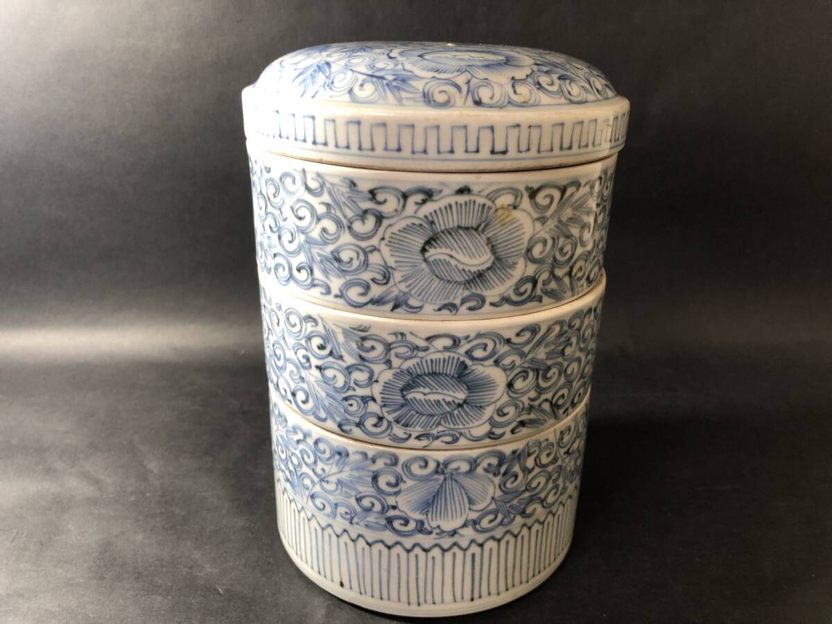 古伊万里 染付 線書き手 三段重 牡丹唐草文様 生活骨董 和食器 骨董雑貨 テーブルコーディネート